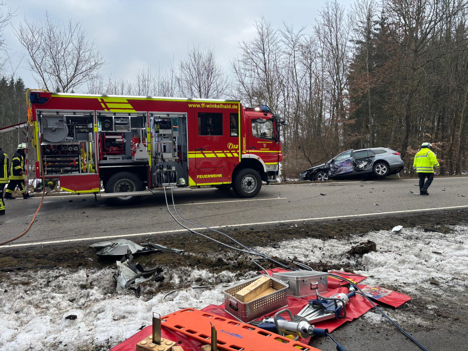 Diepersdorf (DB 3) - Am Freitag, den 20.02.26 wurden um 17:36 Uhr die Feuerwehren Diepersdorf, Leinburg und Schwaig zu einer gemeinsamen Einsatzübung alarmiert, angenommen wurde ein Gebäudebrand in der Laufer Straße. Als Übungsobjekt stand ein Haus zur Verfügung, welches in Kürze abgerissen werden soll und somit die Möglichkeit bestand, sehr realitätsnah zu üben.