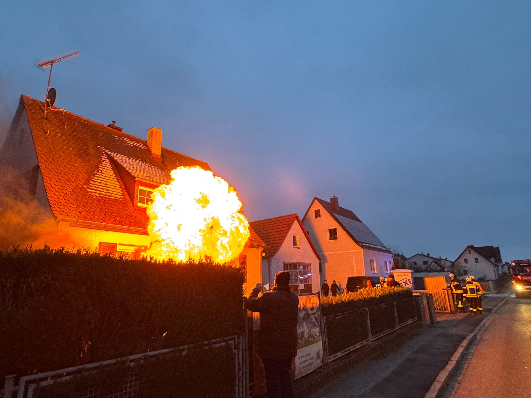 Diepersdorf (DB 3) - Am Freitag, den 20.02.26 wurden um 17:36 Uhr die Feuerwehren Diepersdorf, Leinburg und Schwaig zu einer gemeinsamen Einsatzübung alarmiert, angenommen wurde ein Gebäudebrand in der Laufer Straße. Als Übungsobjekt stand ein Haus zur Verfügung, welches in Kürze abgerissen werden soll und somit die Möglichkeit bestand, sehr realitätsnah zu üben.