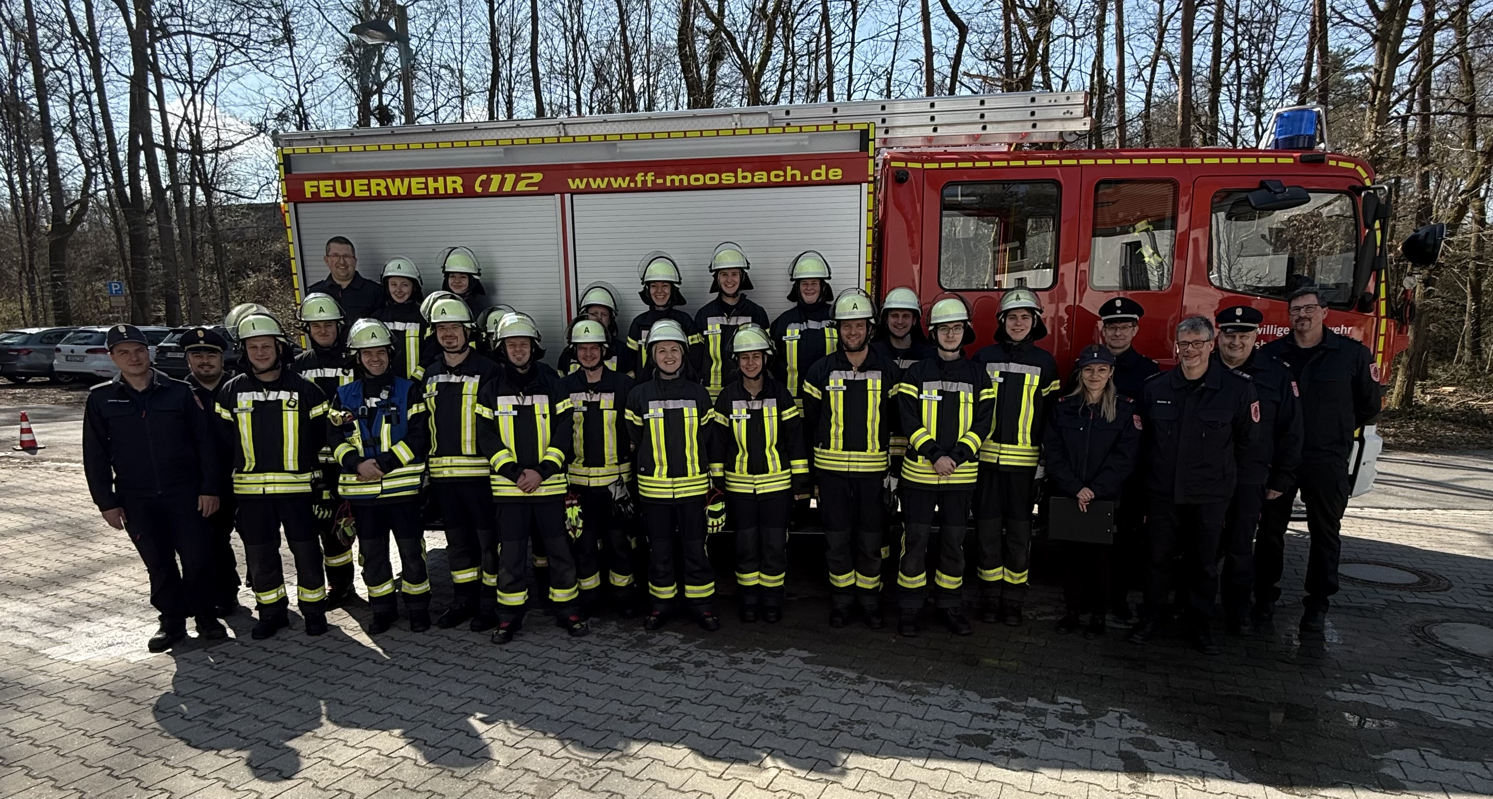 Moosbach (DB 3) - Am Sonntag, den 22.03.2026, traten dieses Jahr gleich zwei Gruppen der Freiwilligen Feuerwehr Moosbach zur Leistungsprüfung „Die Gruppe im Hilfeleistungseinsatz“ an. Nach einer zweiwöchigen Ausbildung mit insgesamt sechs Übungseinheiten legten die 17 Teilnehmer die Stufen 1 bis 6 erfolgreich ab.
