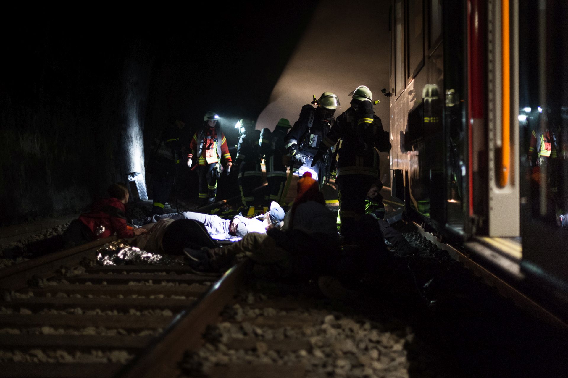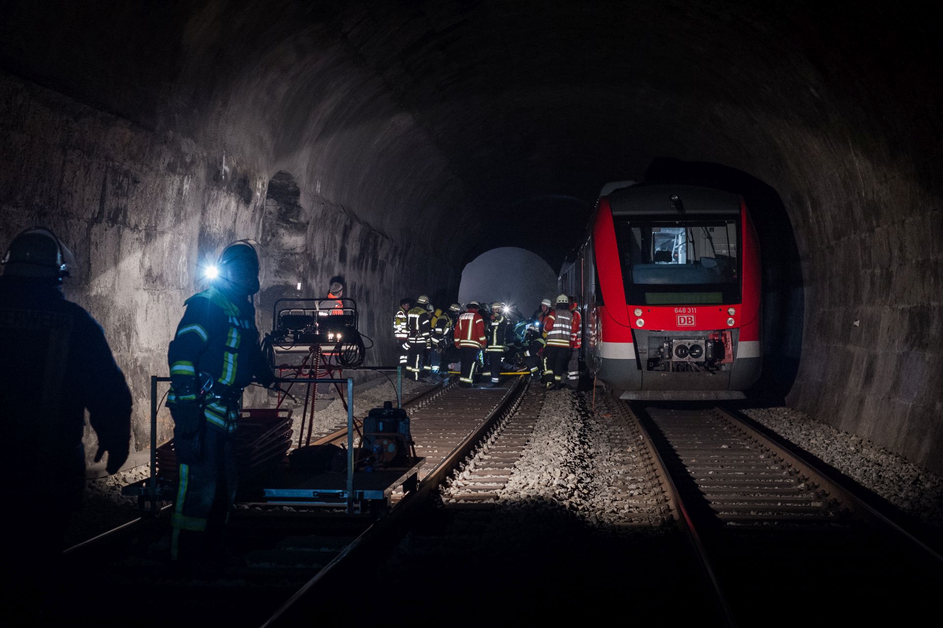 NBG-LAND/Rupprechtstegen: Am frühen Morgen des 15. Oktober 2017 wurden um kurz nach Mitternacht zahlreiche Einheiten der Hilfsorganisationen aus dem Landkreis Nürnberger Land nach Rupprechtstegen alarmiert. Durch den Ort verläuft die Bahnstrecke zwischen Nürnberg und Cheb (Eger). Im dortigen Tunnel „Platte“ wurde nach einer Kollision mit einem LKW ein brennender Zug mit einer großen Anzahl an verletzten Personen gemeldet.
