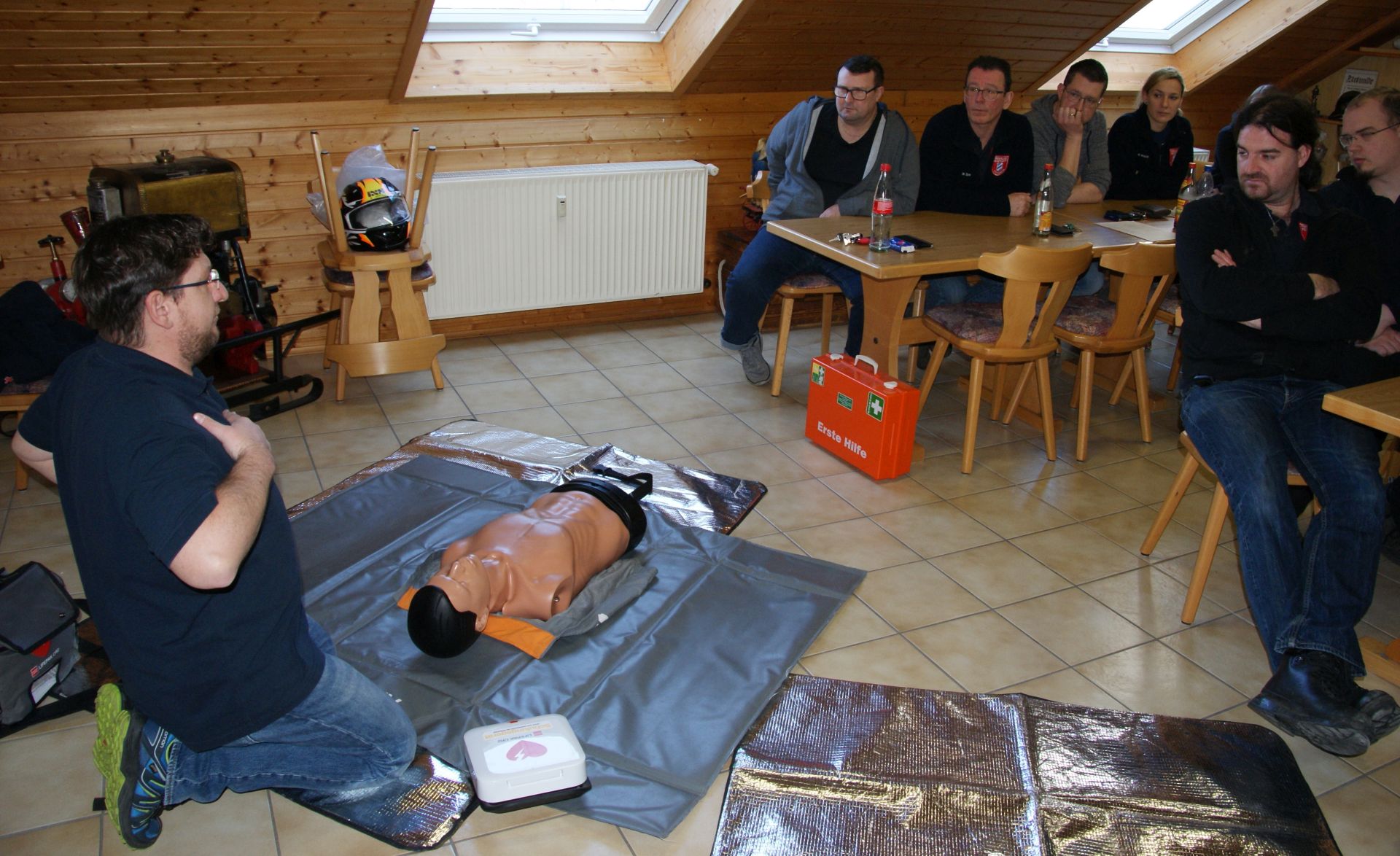 Im Rahmen der 2 Tage umfassenden Ausbildung wurden Grundlagen der notfallmedizinischen Versorgung, wie z.B. das Erkennen lebensbedrohlicher Zustände und deren Behandlung, Erstversorgung von Unfallopfern und Wiederbelebungsmaßnahmen unter anderem mit Hilfe eines Defibrillators, vermittelt.