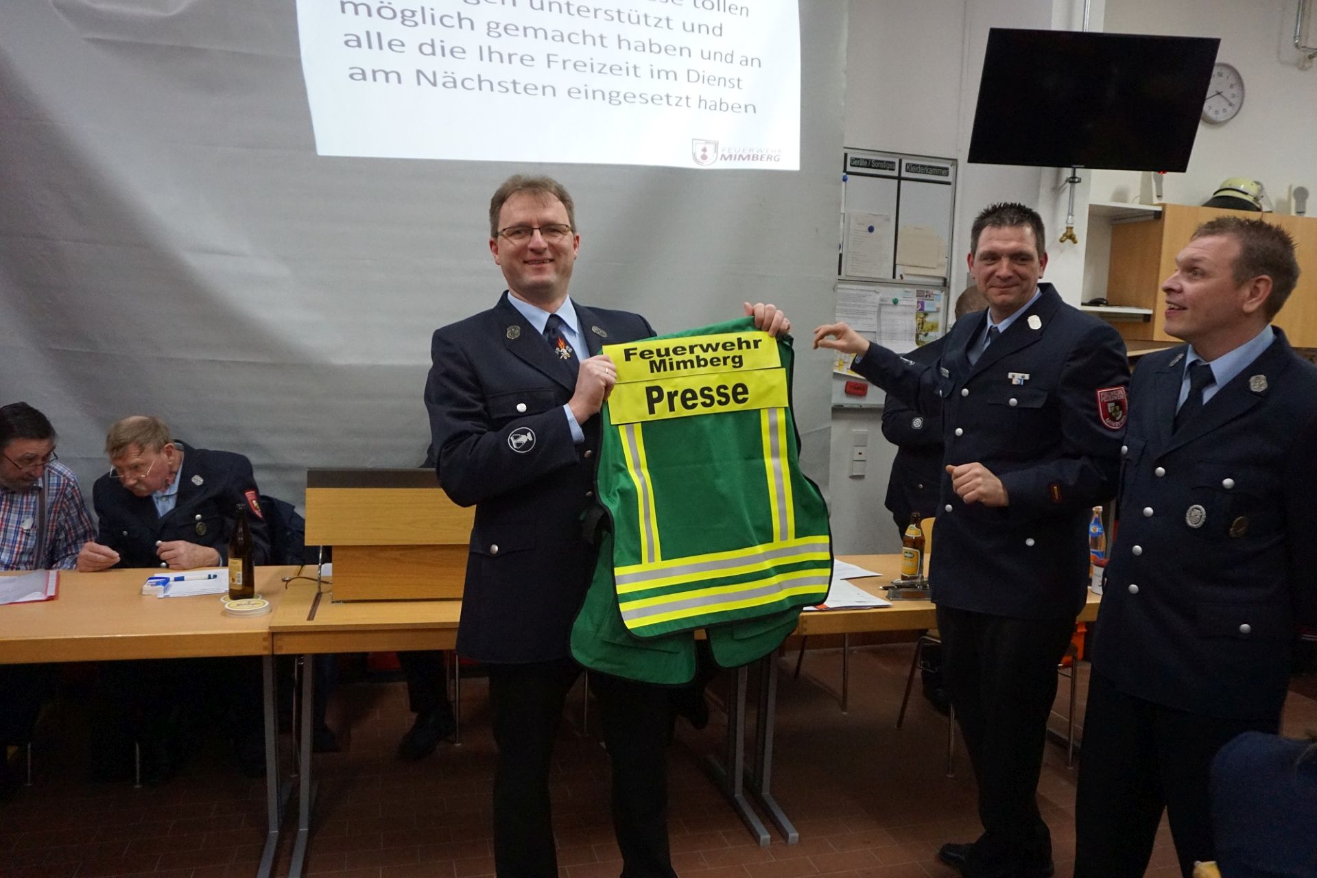 Maik Heyden lobte neben der guten aktiven Mannschaft auch die sehr gute Zusammenarbeit mit der Gemeinde und dankte hierbei dem Bürgermeister Heinz Meyer und seinem Stellvertreter Hermann Bloss, dem Gemeinderat, dem Kämmerer Heinz Rupprecht und Michael Lorenz als Verantwortlichen für das Feuerwehrwesen der Gemeinde.