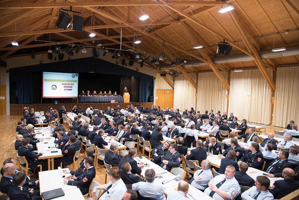 NBG-LAND – Im April fand die jährliche Dienstversammlung der Kommandanten sowie der Kreisbrandinspektion des Landkreises Nürnberger Land in der Karl-Diehl Halle in Röthenbach a.d. Pegnitz statt. Zu Beginn der Veranstaltung, konnte Kreisbrandrat Norbert Thiel neben Landrat Armin Kroder und dem örtlichen Bürgermeister, Klaus Hacker zahlreiche Vertreter aus den einzelnen Feuerwehren, der Kreisbrandinspektion, des Landratsamtes sowie den Einheiten des Landkreises Nürnberger Land begrüßen.