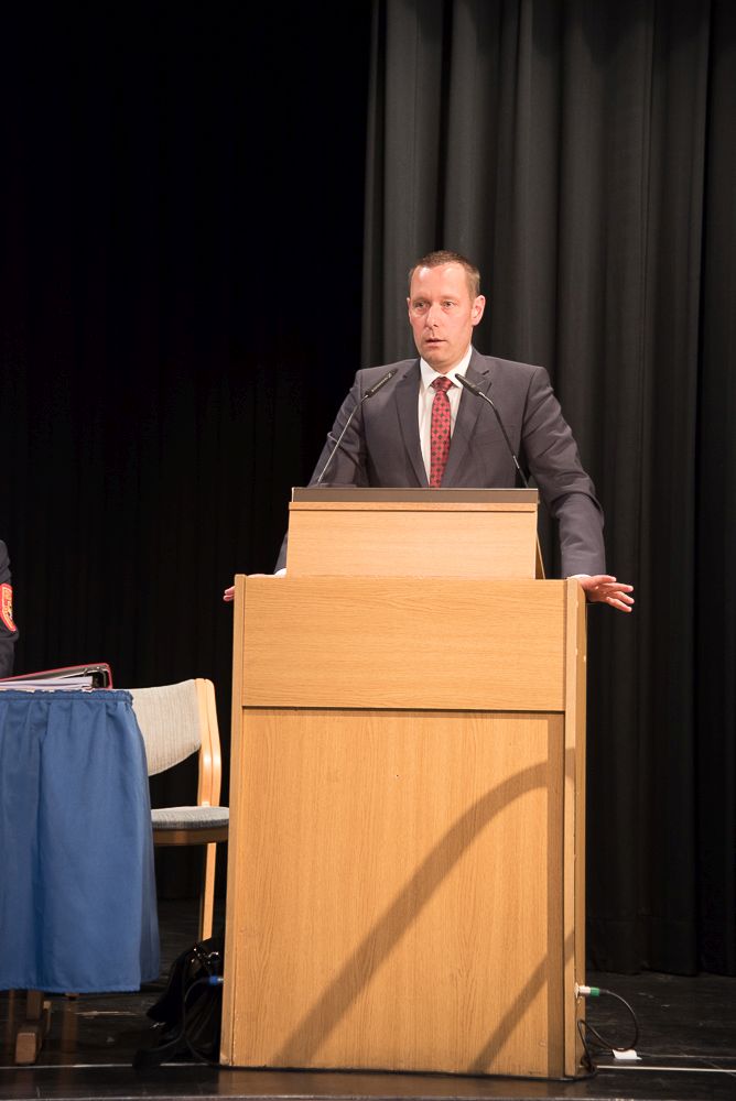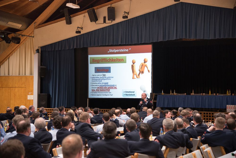 Als Referent zum Thema „Lebensbedrohliche Einsatzlagen“, konnte Landes- und Bundesfeuerwehrarzt Dr. Klaus Friedrich gewonnen werden. Da in der heutigen Zeit Terror- und Amoklagen leider weltweit zunehmend an Bedeutung gewinnen und neben polizeilichen Kräften auch Einheiten von Feuerwehr und Rettungsdienst im Einsatz sind, ist eine optimale Zusammenarbeit besonders wichtig. Oft ist diese Art von Einsätzen zu Beginn für die Rettungskräfte nicht immer sofort als bedrohliche Gefahrenlage erkennbar, da der Alarmierungsgrund oftmals ein normaler BMA Alarm ist. Deshalb ist eine schnelle und detailreiche Versorgung der Kräfte mit den nötigen Informationen und die Nutzung der vorhandenen Schnittstellen erforderlich. Auch sind diese Einsätze oft nicht mit dem Verlassen der Einsatzstelle beendet. Neben der Versorgung meist schwer physisch sowie psychisch verletzter Menschen müssen auch Einsatzkräfte die oft traumatischen Ereignisse und Bilder im Nachhinein aufarbeiten.