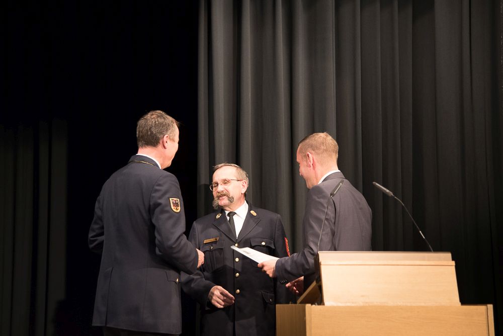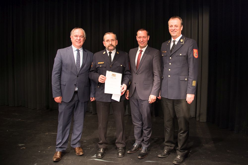 Für 40 Jahre aktiven Dienst in der Feuerwehr, wurde Kreisbrandinspektor Friedrich Holfelder ausgezeichnet. Seit seiner Ernennung zum Kreisbrandinspektor für den Dienstbezirk 2 im Landkreis Nürnberger Land, wurde Friedrich Holfelder im Jahr 2014 zusätzlich zum Örtlichen Einsatzleiter bestellt. Norbert Thiel bedankte sich für das außergewöhnliche Engagement und übergab zusammen mit Armin Kroder eine Urkunde sowie das Ehrenzeichen.