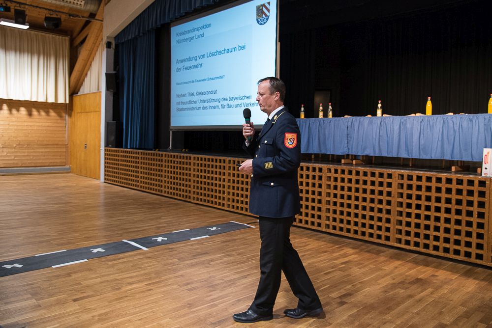 Norbert Thiel bedankte sich am Ende der Veranstaltung bei den Kameraden der Feuerwehr Röthenbach a.d. Pegnitz, welche kurzfristig die Versorgung der anwesenden Teilnehmer mit Getränken übernommen hatten.