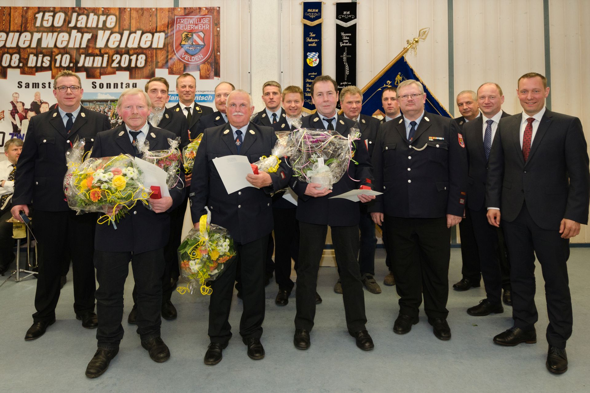 Ehrungen für langjähriges ehrenamtliches Engagement sowie Ausblick auf die 150 Jahr-Feier der Feuerwehr Velden im Juni.