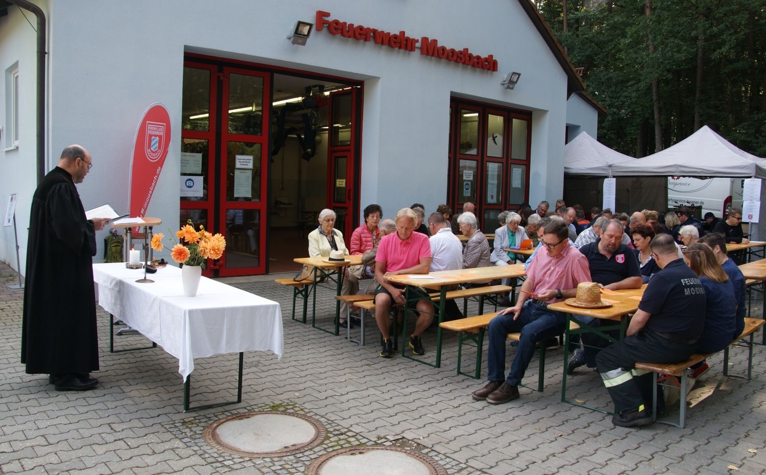 MOOSBACH - Am zweiten Sonntag im September war es wieder soweit, die Feuerwehr Moosbach öffnete ihre Tore für die Bevölkerung. Der Tag begann mit einem evangelischen Gottesdienst im Freien unter der Leitung von Pfarrer Roland Thie und wurde vom evangelischen Posaunenchor Feucht musikalisch begleitet.