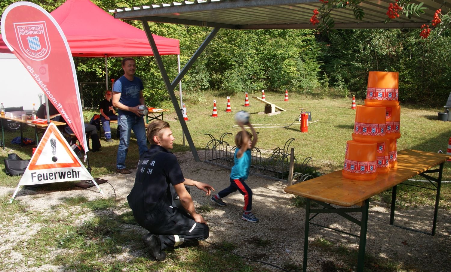 Die jüngeren Besucher konnten in diesem Jahr ihre Geschicklichkeit bei der „Brandmeister-Challange“ unter Beweis stellen. Jeder Teilnehmer bekam eine Urkunde und konnte sich ein kleines Erinnerungsstück aussuchen. Fast schon traditionell war auch wieder die Hüpfburg der Raiffeisenbank Altdorf-Feucht e.G. vor Ort, welche von den anwesenden Kindern reichlich genutzt wurde.