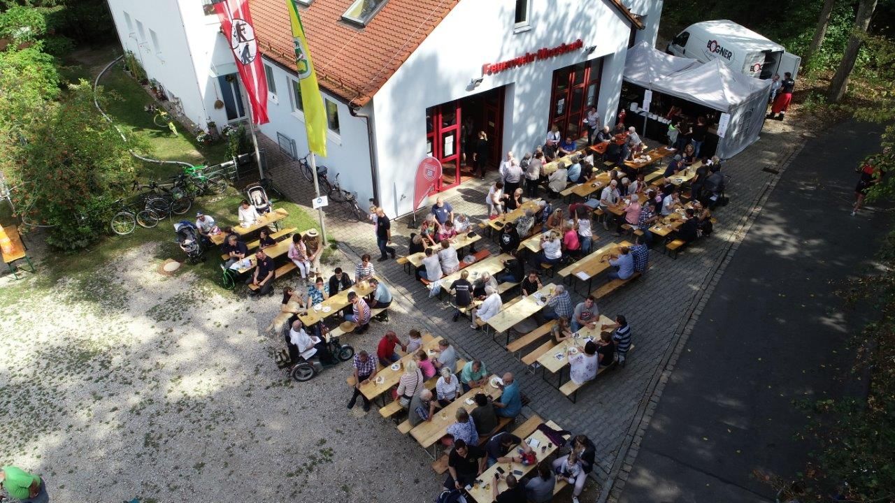 Während des ganzen Tages herrschte bei sonnigem Spätsommerwetter reger Betrieb vor und im Moosbacher Feuerwehrhaus. Dies nutzten zahlreiche Besucher und genossen die Veranstaltung bei Getränken sowie Spanferkelbraten, Schnitzel, Pommes, Schweinesteak und Bratwürste. Auch die vielen selbstgebackenen Kuchen der Kameradinnen und Kameraden wurden von den Gästen verzehrt.
