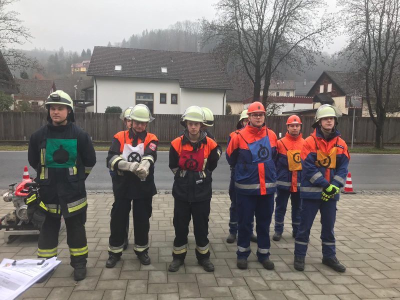Nun galt es das erlernte Wissen unter den strengen Augen des Schiedsrichterteams, bestehend aus KBI Holger Herrmann, KBM Wolfgang Werthner und KBM Thorsten Brunner, unter Beweis zu stellen. Unterstützt wurden diese durch die Ausbilder Stefan Bauer (FF Hartmannshof), Herbert Bauer, Thomas Bauer (beide FF Eschenbach) Marco Konnerth (FF Hohenstadt) und Erwin Bleisteiner (FF Guntersrieth).
