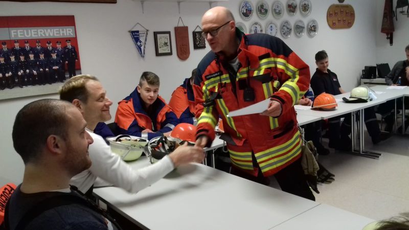 Als erstes mussten die Teilnehmer den theoretischen Teil der Prüfung, bestehend aus 25 Fragen, absolvieren. Im Anschluss an die schriftliche Prüfung galt es nun eine Einsatzübung aus dem Bereich Einheiten im Brandeinsatz durchzuführen.