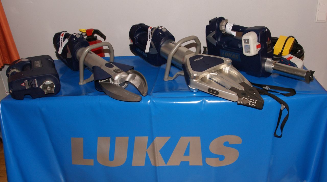 So konnten die Moosbacher Feuerwehrleute einen akkubetriebenen Hochleistungsspreizer SP 777 E2 mit einer Spreizkraft von über 60 Tonnen sowie ein akkubetriebenes Schneidgerät S 788 E2 mit einer Schneidekraft von über 100 Tonnen entgegen nehmen. Zur neuen Ausstattung gehören noch 2 Rettungszylinder die ebenfalls akkubetrieben sind, alle Geräte stammen von der Firma LUKAS Hydraulik GmbH aus Erlangen. Der große Vorteil von elektro-hydraulischen Rettungsgeräten ist der schnelle und flexible Einsatz ohne Hydraulikschläuche und ohne Hydraulikaggregat.