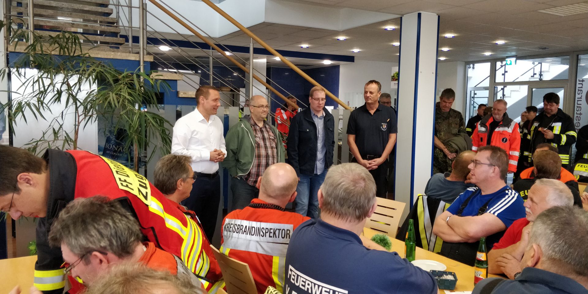 Kreisbrandrat Norbert Thiel bedankte sich abschließend bei allen anwesenden Kräften und hob den hohen Stellenwert solcher Übungen sowie den ehrenamtlichen Einsatz aller Beteiligten hervor. Dies sei heutzutage keine Selbstverständlichkeit mehr. Auch bedankte sich Thiel bei den anwesenden Geschäftsführern der Firma Excella für die Möglichkeit eine solche Übung auf dem Firmengelände durchführen zu können.