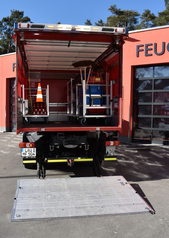 Der Versorgungs-Lkw dient zum Transport von Ausrüstungen größeren Umfangs. Der Planen- und Spriegel Aufbau verfügt seitlich wie auch oben über eine Schiebeplane zur einfachen Be- und Entladung. Verschiedene Möglichkeiten der Ladungssicherung stehen zur Verfügung (Zurrösen, Rollwagenhalter, Sperrstangen). Die Ladefläche ist 4,5 m lang und hat Stehhöhe. Was in Zukunft auch zum Ausrüsten von CSA-Träger und als Wetterschutz Verwendung finden wird. Auf die Pritsche passen neun Standard-Rollcontainer (1.200 x 800 mm). Für die Entladung steht am Heck eine Ladebordwand mit einer Hubkraft von 2000 kg zur Verfügung. Diese kann in der Mitte geteilt werden, um das Fahrzeug zum Verlegen von Schläuchen einzusetzen. Die komplette Fahrzeugbeladung befindet sich in der Kabine und in drei Unterflurkästen, um die komplette Ladefläche für Transportaufgaben nutzen zu können.