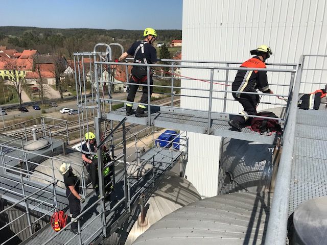 NEUHAUS/PEGNITZ (DB1) - Die neu geschaffene Ausbildungsgemeinschaft Absturzsicherung der Feuerwehren aus Neuhaus/Peg. und Auerbach/OPf. führte vom 05.04. - 20.04.2019 einen Lehrgang Absturzsicherung durch. Die Ausbildung fand an den Standorten Neuhaus und Auerbach statt.