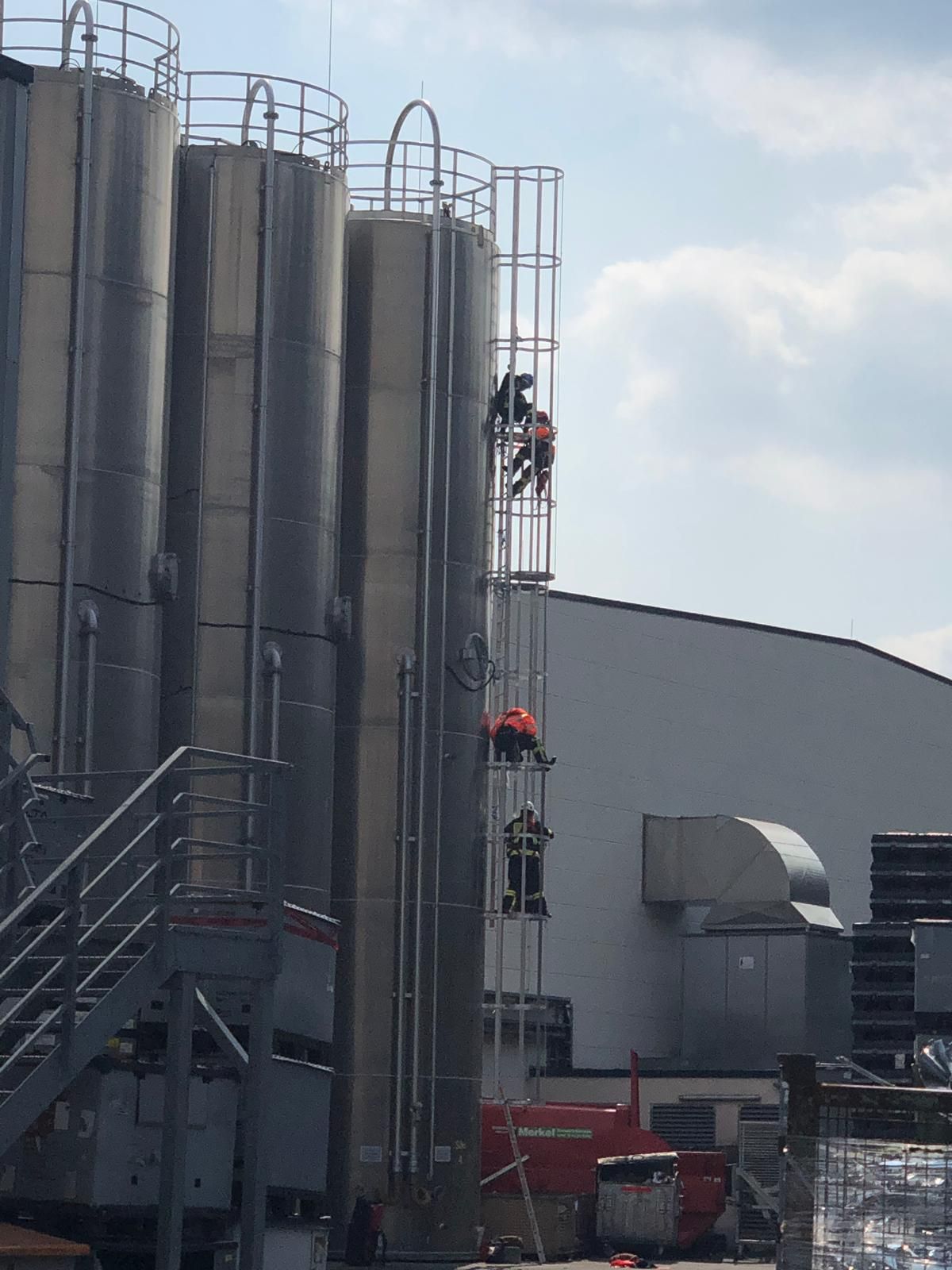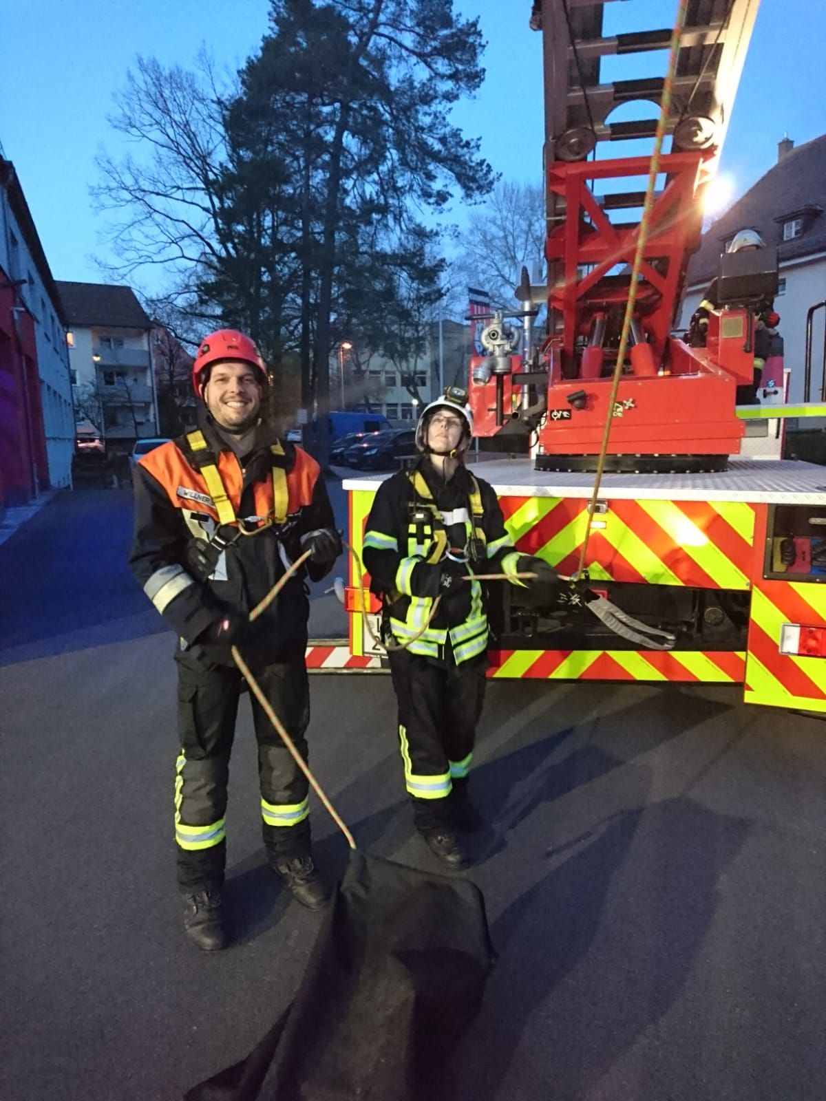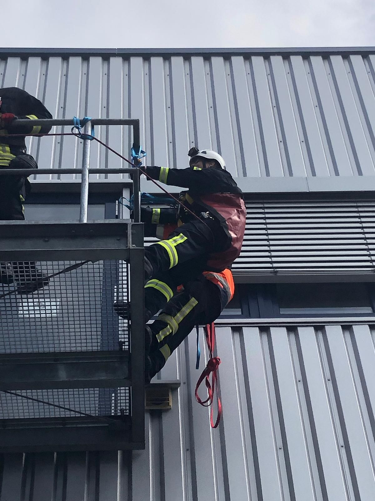 Praktisch wurde dann das Halten/Rückhalten, das Selbstretten mit der Feuerwehrleine und Feuerwehrhaltegut sowie das richtige Abführen von Personen über Leitern der Feuerwehr wiederholt und geübt.