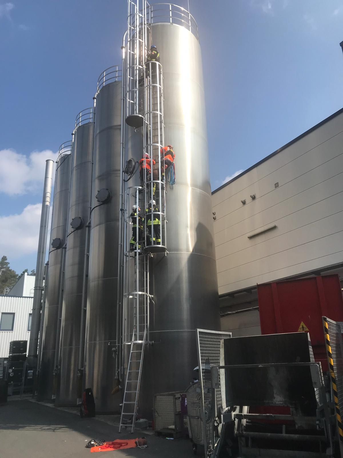Beim Einsatz im Berchtesgadener Land wurde oftmals eine Person über einen Festpunkt an einer Drehleiter gesichert. Dies wurde am letzten Tag vor der Prüfung behandelt. Denn das ist eine gute Möglichkeit um ein sicheres Arbeiten auf Dächern zu gewährleisten.