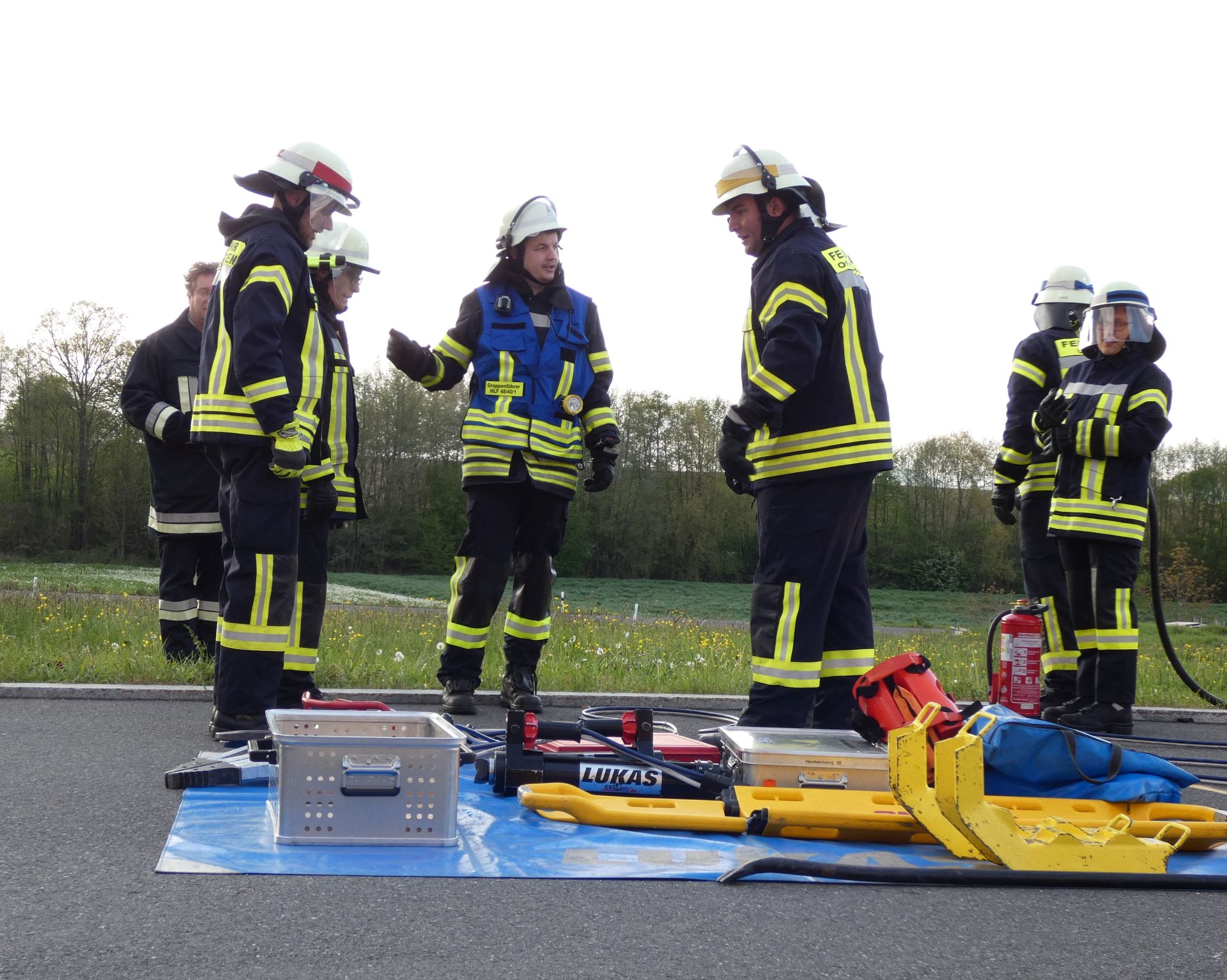 Neben dem Gerätehaus wurden die 24 Teilnehmer in nur vier Wochen auf die einzelnen Aufgaben vorbereitet und ausgebildet. Am 10.Mai legten dann drei Gruppen der Feuerwehr Offenhausen die Leistungsprüfung nach FwDV3 ab. Angenommen wird ein Verkehrsunfall mit eingeklemmter Person. Innerhalb von 240 Sekunden wird das zur Bergung benötigte Gerät aufgebaut, die Einsatzstelle ausgeleuchtet, und eine Verkehrsabsicherung erstellt.