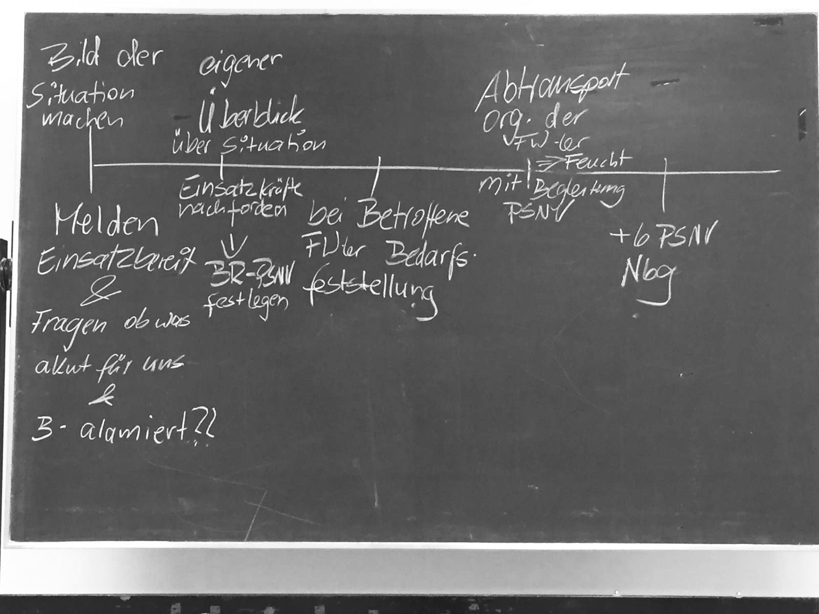 Dieses Übungsszenario stellte die Mannschaft der PSNV-E vor einigen Herausforderung, die aber quer durch gut bewältigt wurden. Absichtlich übernahm die Führung der Gruppe keinen aktiven Part an der Übung, so dass die Mannschaft selbst die Lage bewerten und Entscheidungen treffen musste.