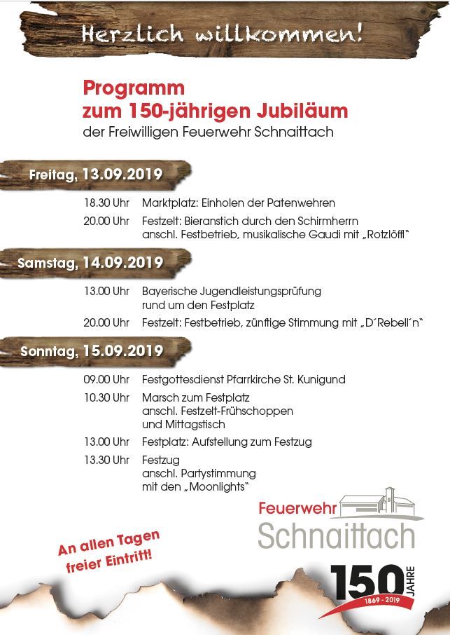 Vorankündigung 150 Jahre Feuerwehr Schnaittach