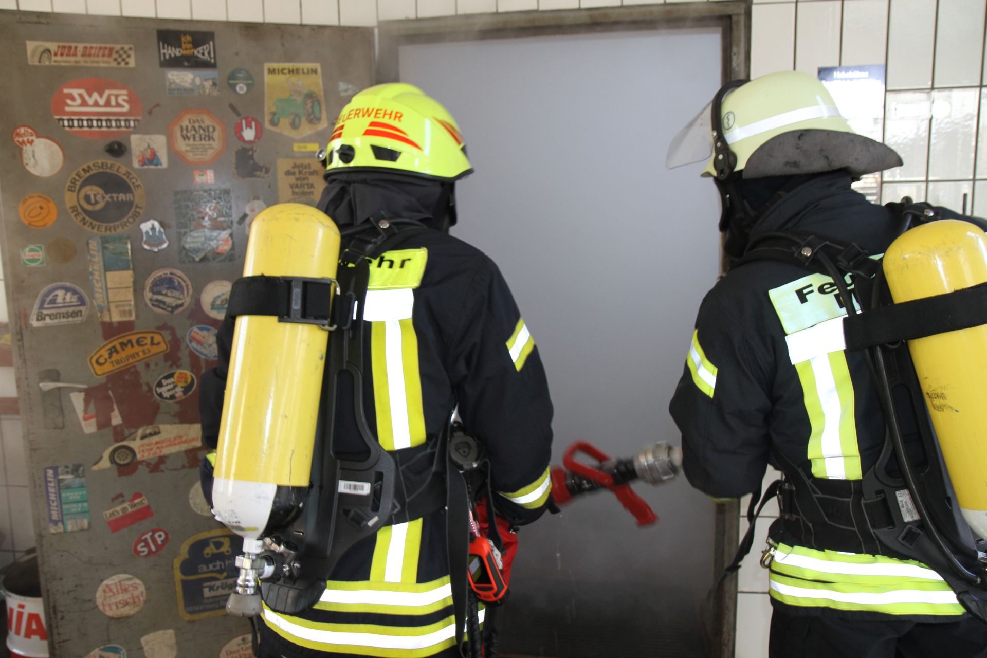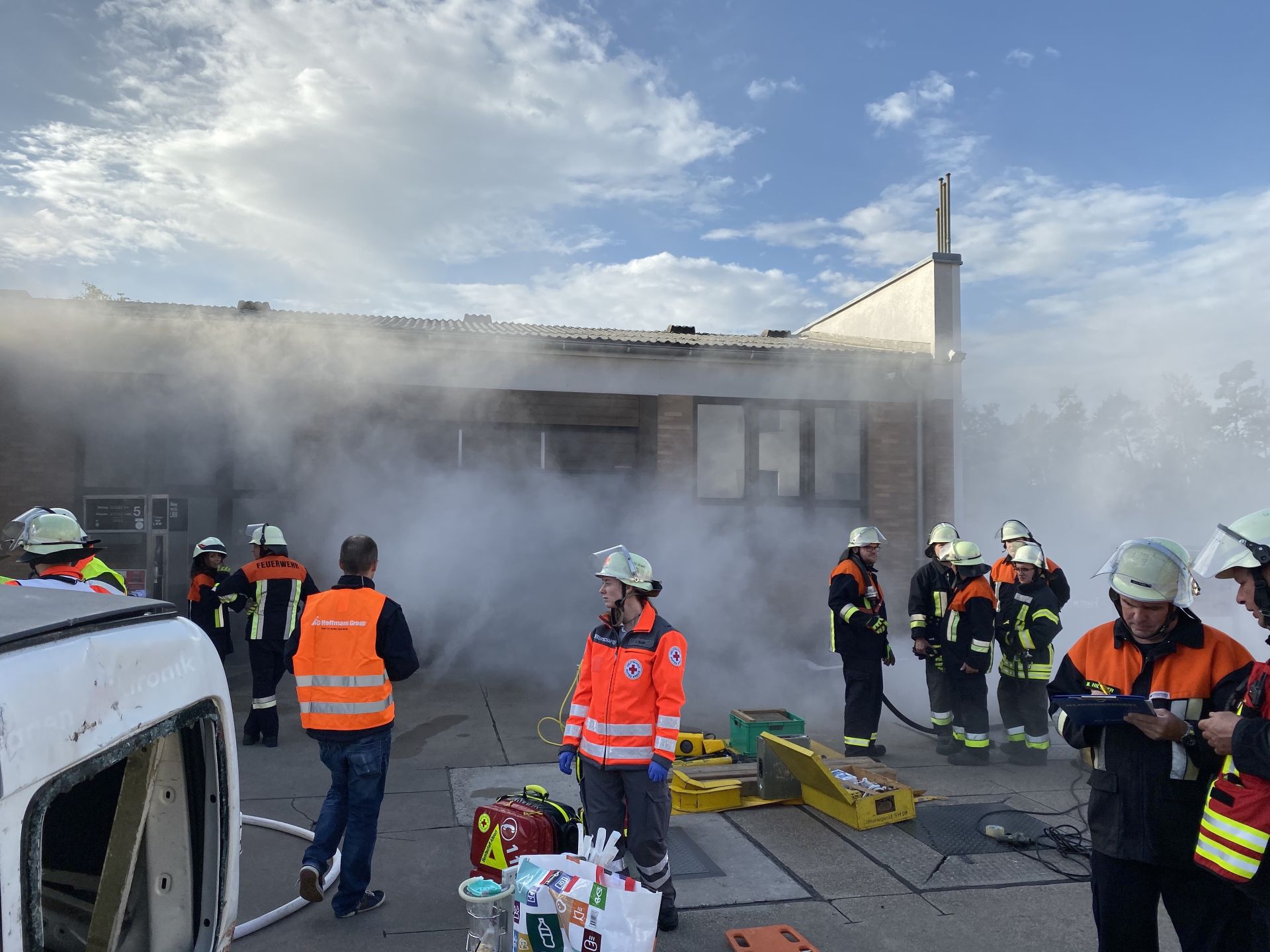 !! „Brand KFZ Werkstatt nach Verpuffung, Personen im Gebäude“ !!