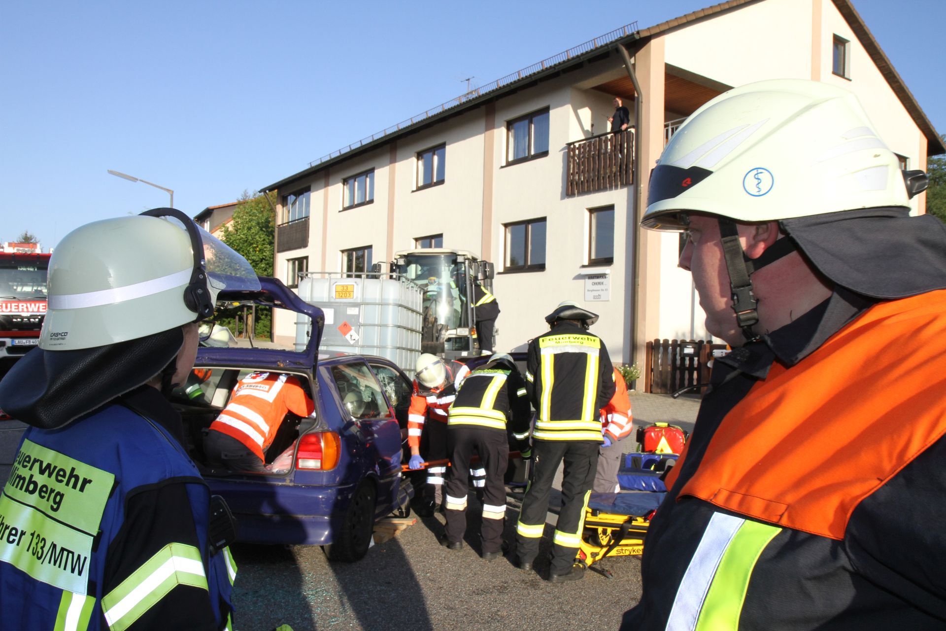Mimberg (DB 3) - Alljährlich üben die Feuerwehren der Gemeinde Burgthann zusammen in einer Großübung den gemeinsamen Einsatz. Rollierend wird der Schadensort zw. den einzelnen Feuerwehren gewechselt. Dieses Jahr richtet die FF Mimberg diese Übung federführend aus.