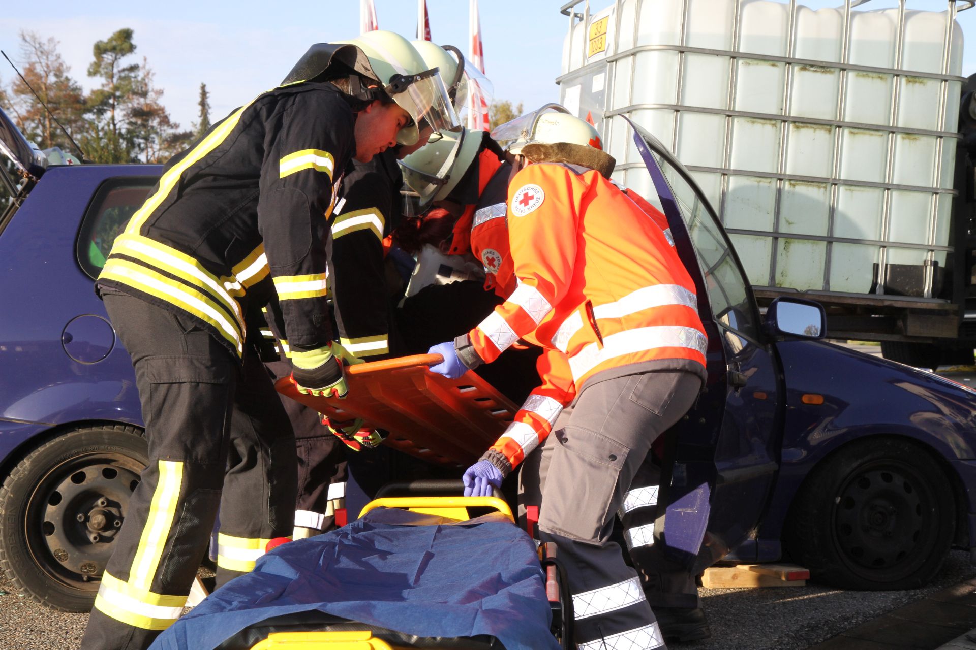 Abschnitt 4 – die Verletztensammelstelle - stellte abschließend der Rettungsdienst, welcher sich um die Erstversorgung aller verletzten Personen kümmerte.