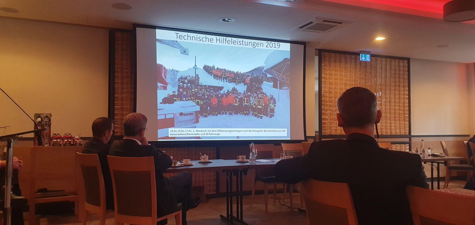 Anschließend trat KBI Herrmann wieder an das Rednerpult, welcher sein 10-jähriges Jubiläum als Kreisbrandinspektor feiert, und stellte den neuen „THL-roter Faden“ vor. Ebenfalls gab er Infos über neu- bzw. wiedergewählte Kommandanten und gab die 2020 anstehenden Feuerwehrfeste bekannt. Vor allem Personaländerungen im Ausbildungskatalog hob er hervor. Weitere Infos gab es über den im letzten Jahr an der Kommandantenversammlung vorgestellten Leistungswettbewerb KwB.