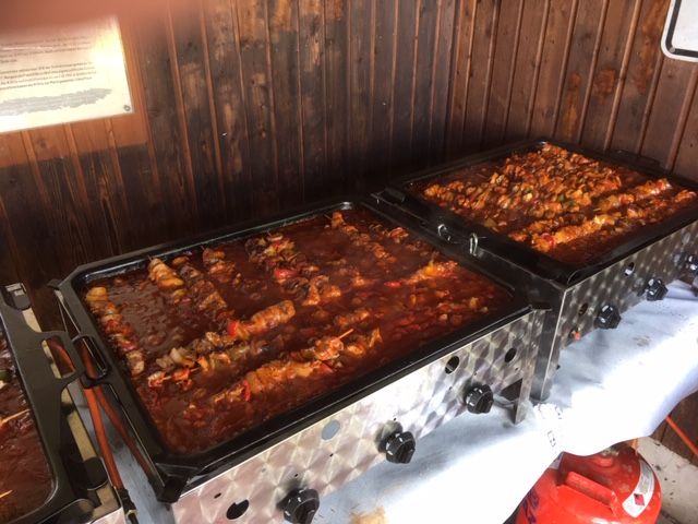 Somit wurde von der Vorstandschaft des Vereins kurzerhand beschlossen, wenn schon kein geselliges Zusammensein möglich ist, dass wenigstens die Bürger des Ortes kulinarisch an diesem Samstag Abend versorgt werden. Per Bestellzettel, die in den Briefkästen verteilt wurden, standen selbstemachtes Schaschlik, Sardinen- und Lachsbrötchen, einzeln oder als sogenanntes Paket single, Paket duo oder Family Paket, jeweils mit Getränk zur Auswahl. Die Resonanz der Dorfbevölkerung war überragend, so dass bereits am Vorabend mit den Vorbereitungen – selbstversändlich unter Einhaltung des geforderten Mindestabstandes und Tragen der Mund-Nasen-Maske – begonnen wurde. Es sind insgesamt ca. 70 Kg Fleisch und Gemüse zu 220 Stück Schaschlik auf 7 Gasgrills verarbeitet worden. Jede Bestellung wurde zwischen 18 und 19 Uhr von unseren 5 Liefertrupps mit je 2 Personen im PKW durch ein ausgeklügeltes Verteilsystem an ca. 60 Haushalte im Hauptort Großbellhofen und den Nebenorten Untersdorf und Kleinbellhofen geliefert. Hier vergingen zwischen Fertigung und Anlieferung nur wenige Minuten, so daß die gepackten Papiertüten incl. Begleitschein heiß beim Besteller ankamen. Die Freude über diesen gelungenen kulinarischen Einsatz war riesig groß.