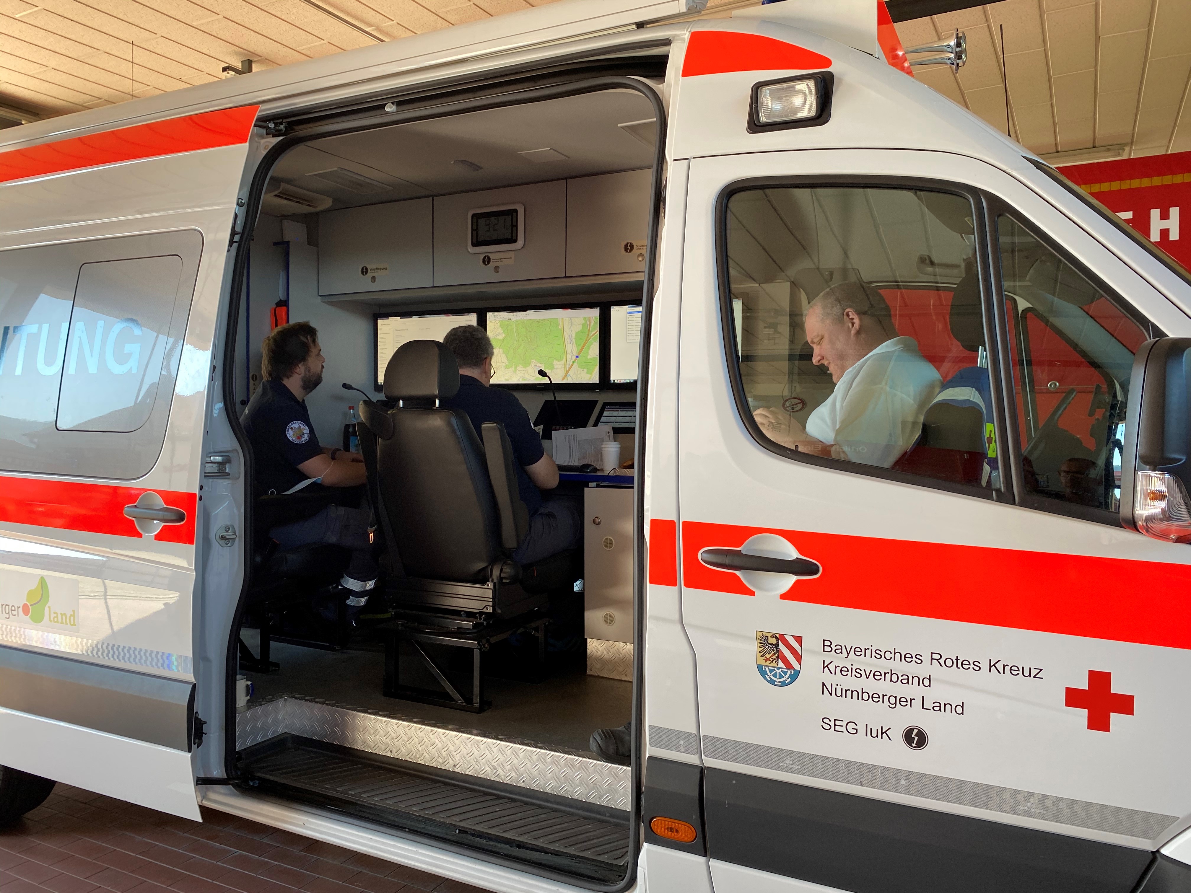 Um das Übungsziel zu erreichen wurde zu Beginn der Übung eine gemeinsame Einsatzleitung von Rettungsdienst und Feuerwehr im Gerätehaus der Feuerwehr Schnaittach eingerichtet. Unterstützt wurde die Einsatzleitung dabei durch die UG-SanEL sowie die IuK-Einheit des Landkreises Nürnberger Land. Beide Einheiten führten gemeinsam Lagekarte und Kräfteübersicht, dokumentierten den Einsatz, stellten das nötige Kartenmaterial für die Suchteams bereit und übernahmen die Kommunikation über Funk.