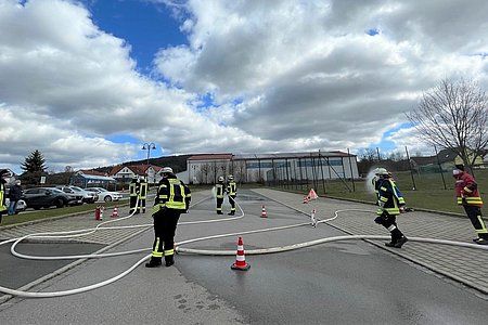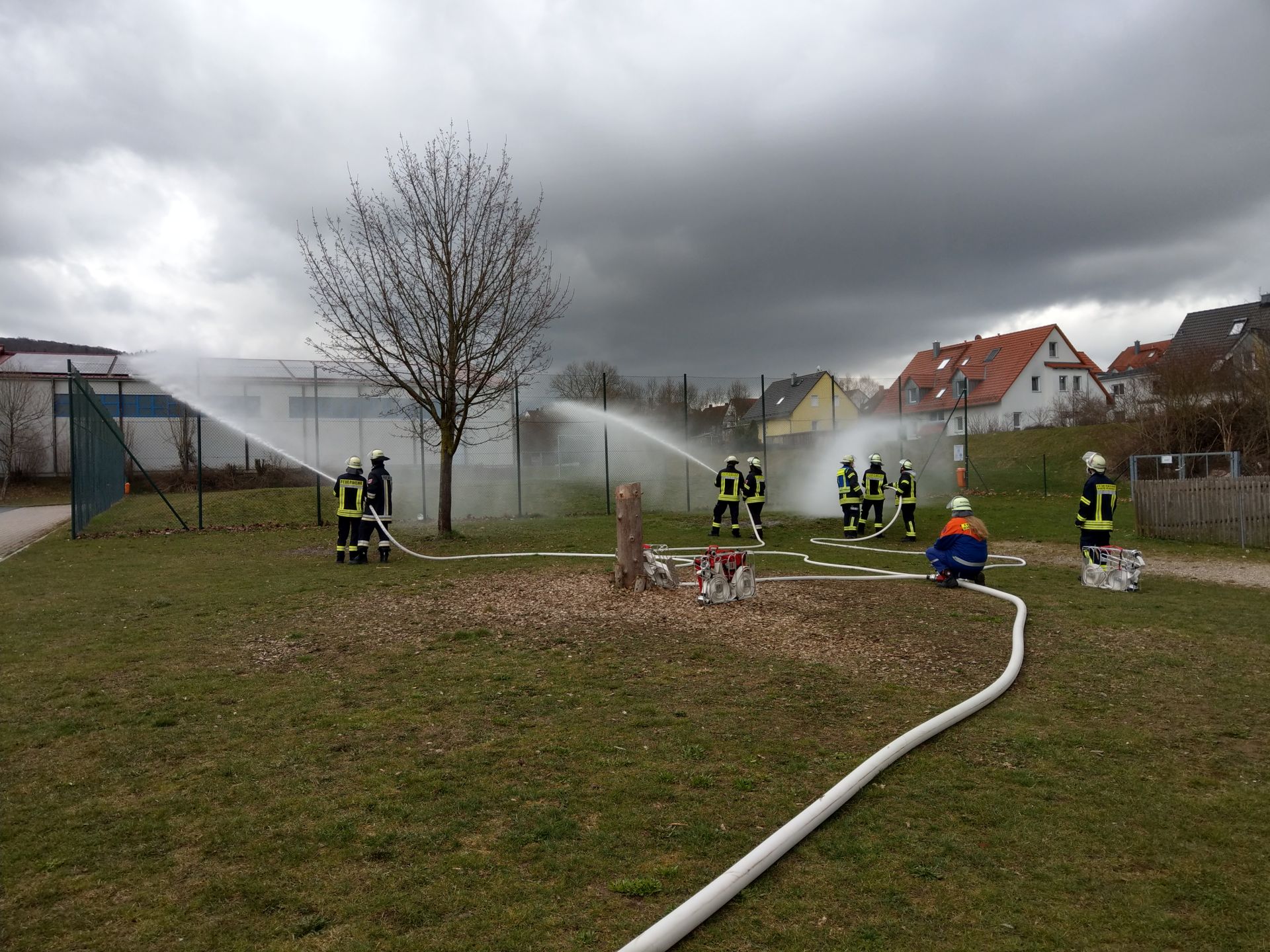 Ein weiterer wichtiger Bestandteil des ersten Ausbildungsabschnittes war das Thema Brandbekämpfung. Dabei reichte das Ausbildungsspektrum von der Wasserentnahme über die Wasserförderung bis hin zum eigentlichen Löschangriff inklusive aller zugehörigen Geräte sowie der nötigen Einsatztaktik und den Abläufen bei einem Brandeinsatz.