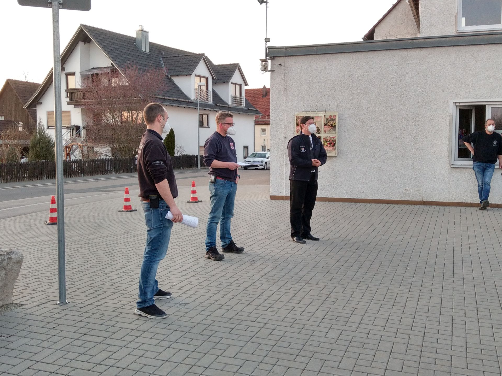 Erstmalig wurde die theoretische Prüfung im online Verfahren abgehalten. Seitens der Kreisbrandinspektion wurde hierfür der Prüfungsbogen zusätzlich als online Version erstellt, welcher dann durch die Teilnehmer mit ihrem Handy bearbeitet wurde. Dabei konnte man sich bei gutem Wetter im Freien hinsetzen und so den Abstand wahren. Da die Auswertung der online beantworteten Bögen automatisch möglich ist, war die Prüfung umgehend ausgewertet und es konnten die Teilnahmebestätigungen durch KBI Falk, KBM Wolshöfer und Lehrgangsleiter Hirschmann ausgeteilt werden.