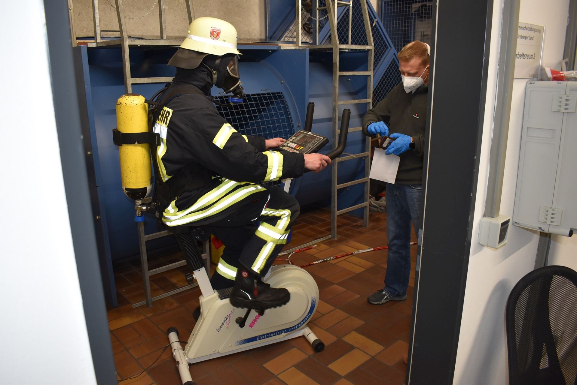 Dass die Tätigkeit als Atemschutzträger auch körperlich anspruchsvoll ist, erfuhren die Teilnehmer im Rahmen eines Belastungstests sowie bei einem Fitnessparcours. Beides wurde aber von allen problemlos absolviert.