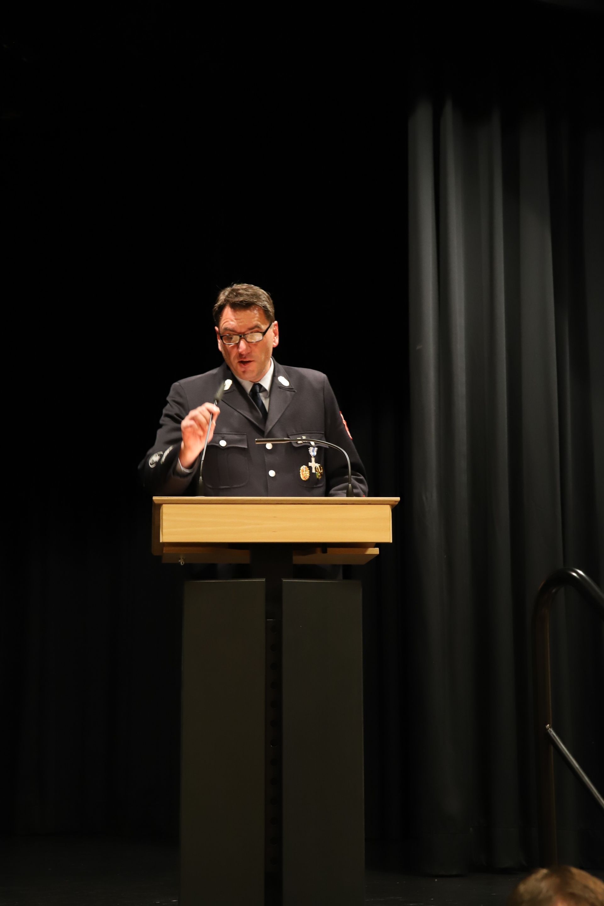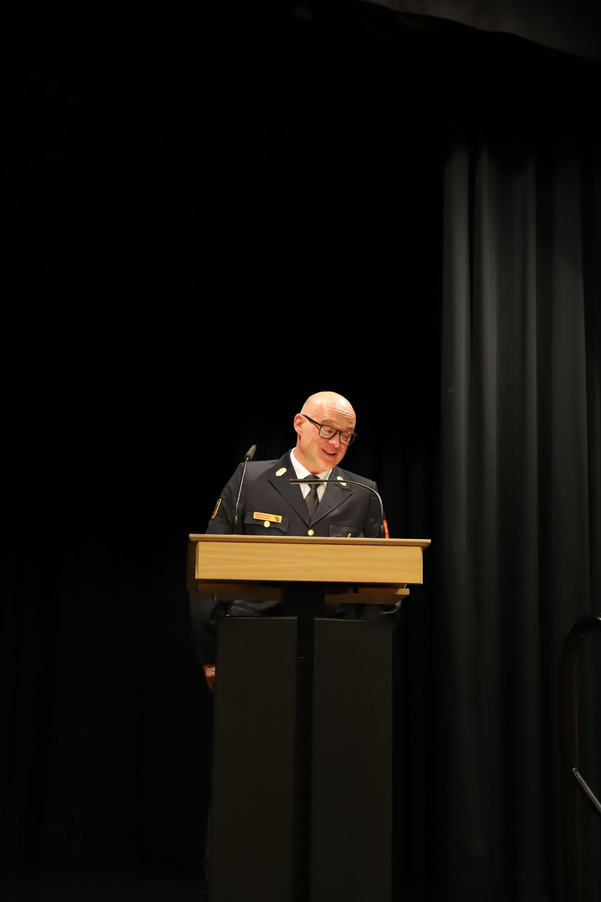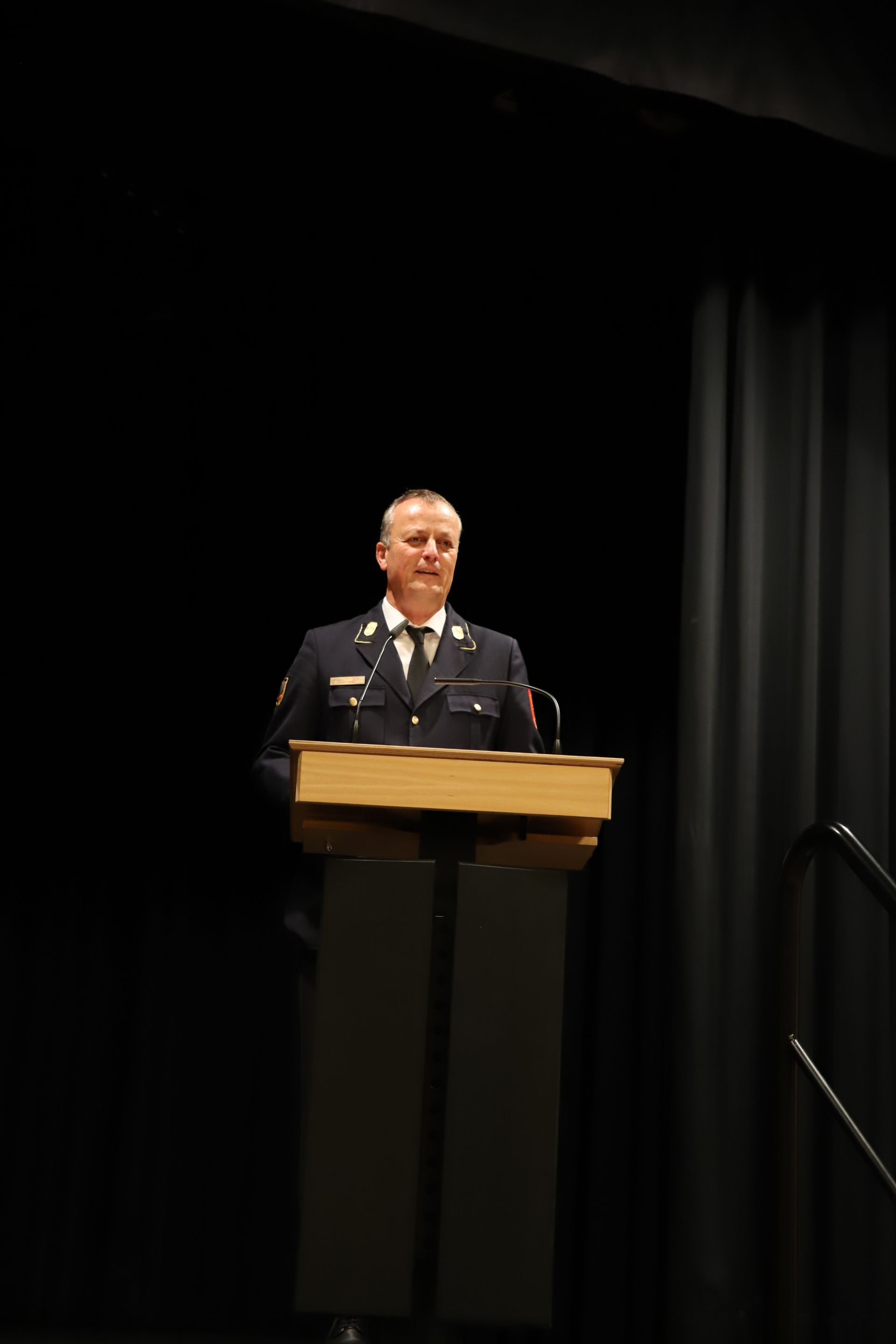Auch Hausherr Klaus Hacker, Bürgermeister der Stadt Röthenbach a. d. Peg., dankte in seinen Grußworten den Kommandantinnen und Kommandanten für ihre geleistete Arbeit und hob am Beispiel von Röthenbach die Bedeutung einer guten Zusammenarbeit und eines guten Verhältnisses zwischen Ortsfeuerwehren und Kommunen  hervor. Auch er betonte dabei, wie wichtig Wertschätzung für die im Ehrenamt geleistete Arbeit ist. Er wünschte abschließend den Anwesenden und den Aktiven in ihren Wehren stets eine gesunde sowie heile Wiederkehr und der Versammlung heute eine faire Wahl.
