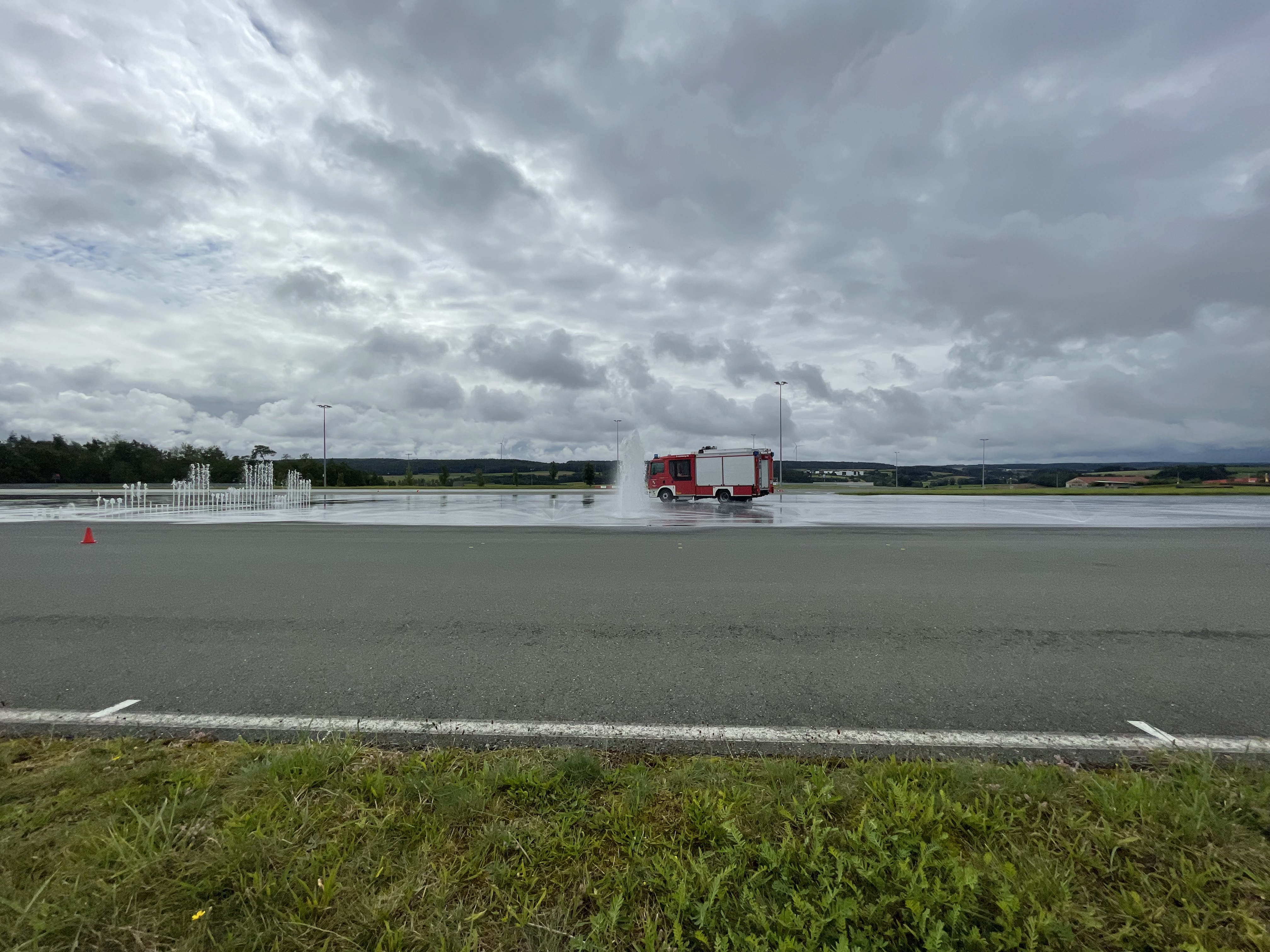 Nachdem sich die Kameraden um 6 Uhr bei der Feuerwehr in Altdorf versammelt hatten, ging es gemeinsam zum Trainingszentrum. Nach der Anreise zum ADAC Übungszentrum in Schlüsselfeld fand eine kleine theoretische Einweisung statt, ehe es dann direkt auf den Übungsplatz ging. Hier wurden neben den ersten Ausweichmanövern auf trockenen Straße, auch die optimale Sitzposition und Spiegeleinstellung vertieft. Weiter ging es dann mit Gefahrenbremsungen auf trockener und nasser Straße, sowie auf einer glatten Fahrbahn. Hierbei war es für die Fahrer interessant, selbst zu erfahren, wie kurz der Bremsweg mit teilweise nur 5 Metern bei einem Feuerwehrauto sein kann.  Dieser  verlängert sich auf nasser oder gar glatter Fahrbahn allerdings erheblich. Dies wurde dann bei Ausweichmanövern mit unterschiedlichen Geschwindigkeiten sehr schnell deutlich. Nach einer kurzen Mittagspause mit Verpflegung am Buffet, kam neben weiteren Übungen auf der geraden der Höhepunkt mit Gefahrenbremsung bergab direkt in einer Kurve. Diese Übung wurde dann auch bergauf auf nasser Fahrbahn wiederholt um die Reaktion und das Verhalten des Fahrzeugs auch in dieser Situation kennen zu lernen. Nach einer Abschlussbesprechung ging es dann für die Feuerwehrkameraden wieder zurück zum Standort.