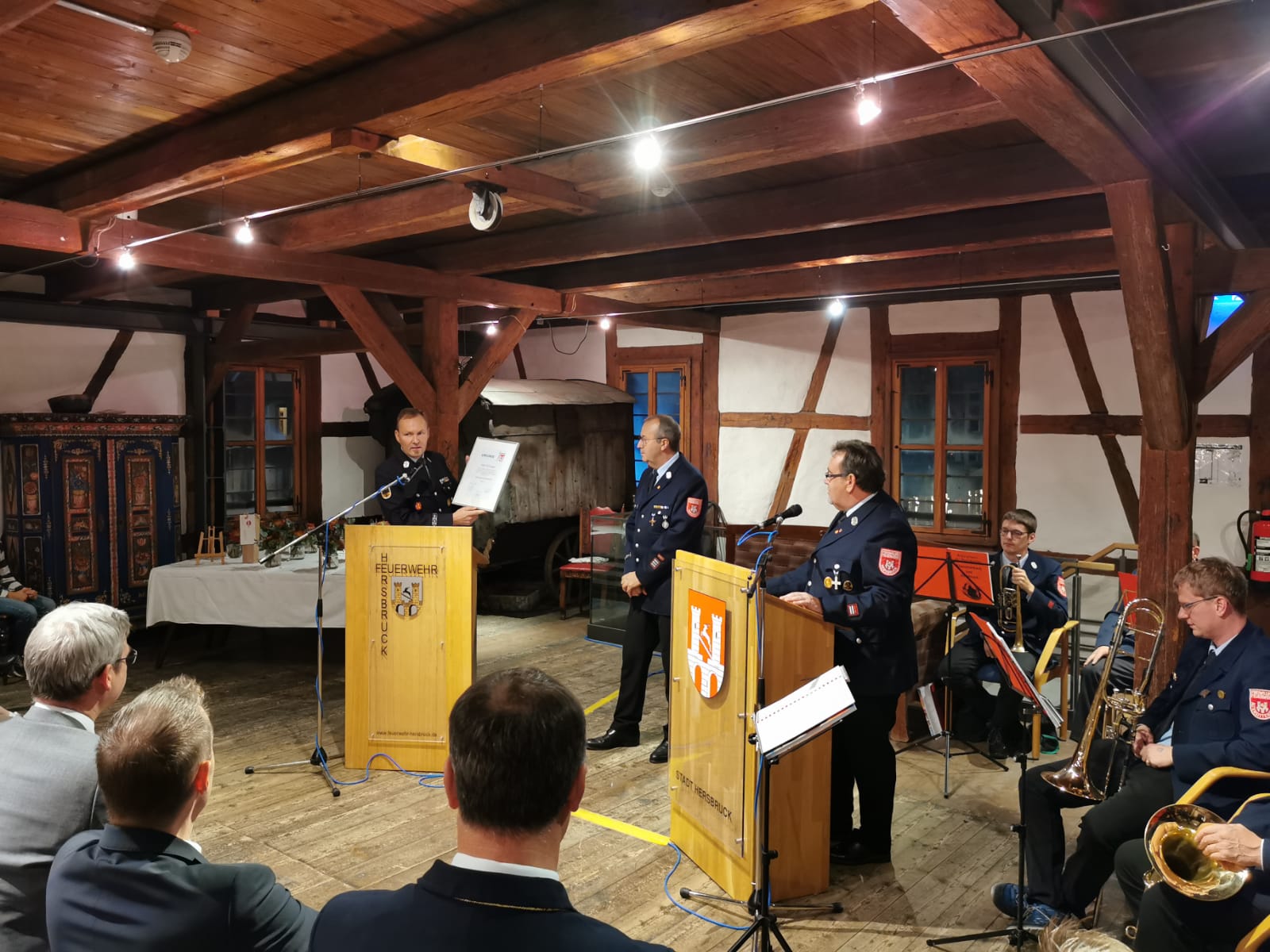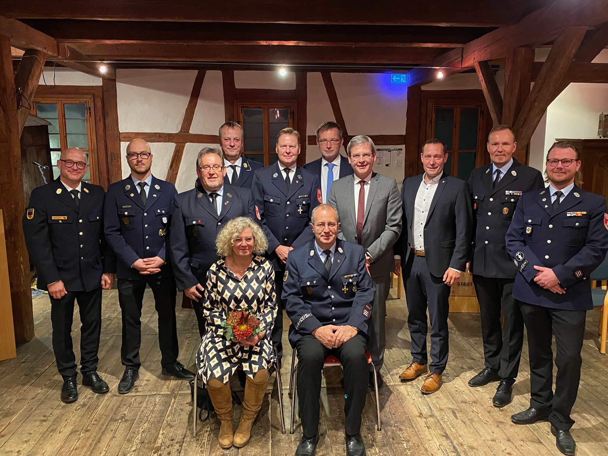 Hersbruck (DB1) - Am Abend des 23.10.2021 wurde der langjährige federführende Kommandant der Stadt Hersbruck, Uwe Holzinger, im Anschluss an die staatlichen Ehrungen für langjährigen Feuerwehrdienst zum Ehrenkommandanten der Stadt Hersbruck ernannt.