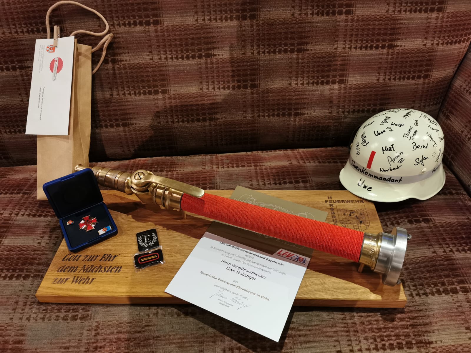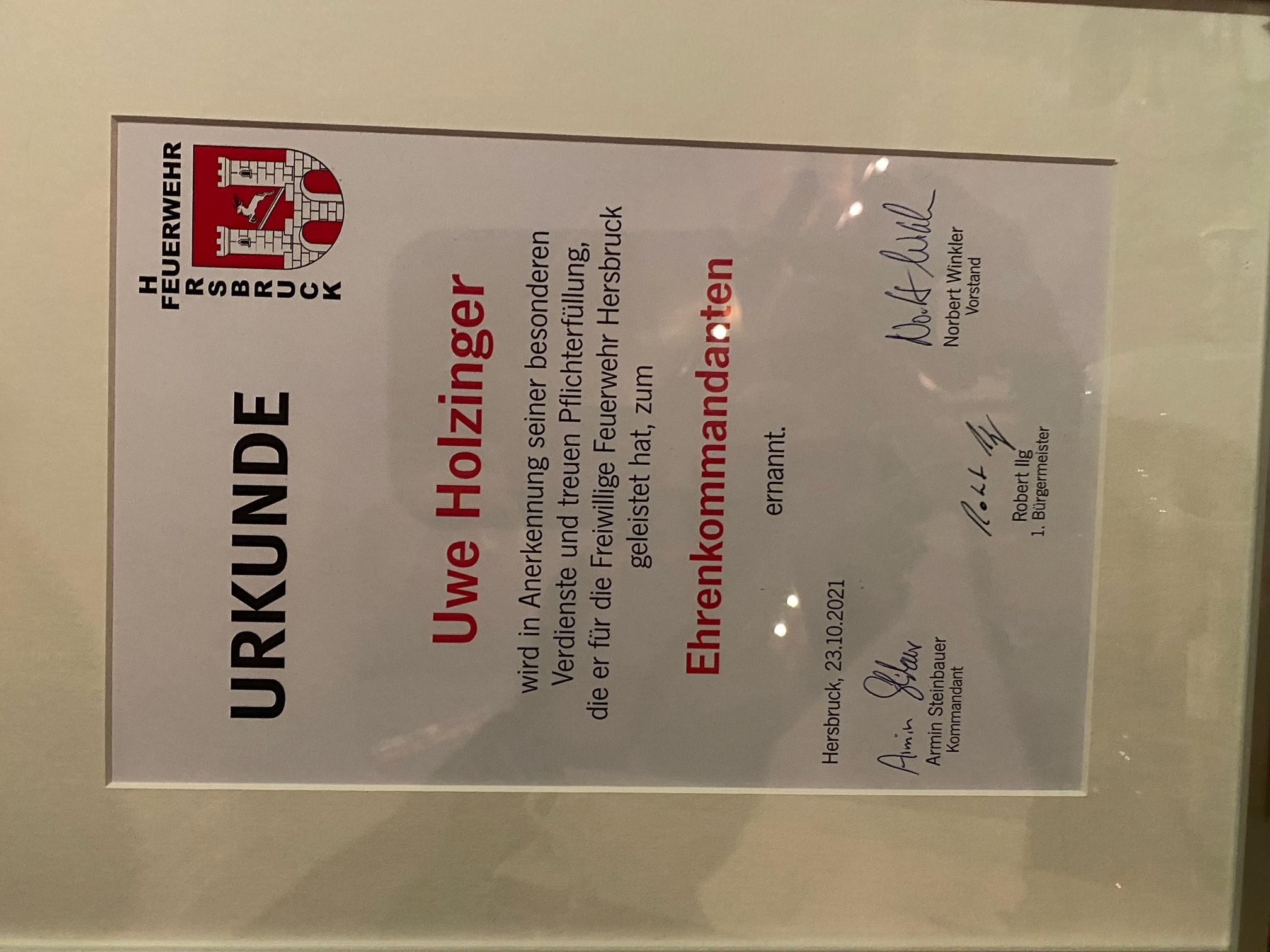 Seine besonderen und herausragenden Leistungen sowie die langjährige Tätigkeit in der Führungsarbeit der Feuerwehren der Stadt Hersbruck ist äußerst lobenswert und verdient daher besondere Würdigung und Wertschätzung. Die Feuerwehr Hersbruck ist besonders stolz auf die langjährige Arbeit ihres neuen Ehrenkommandanten Uwe Holzinger!