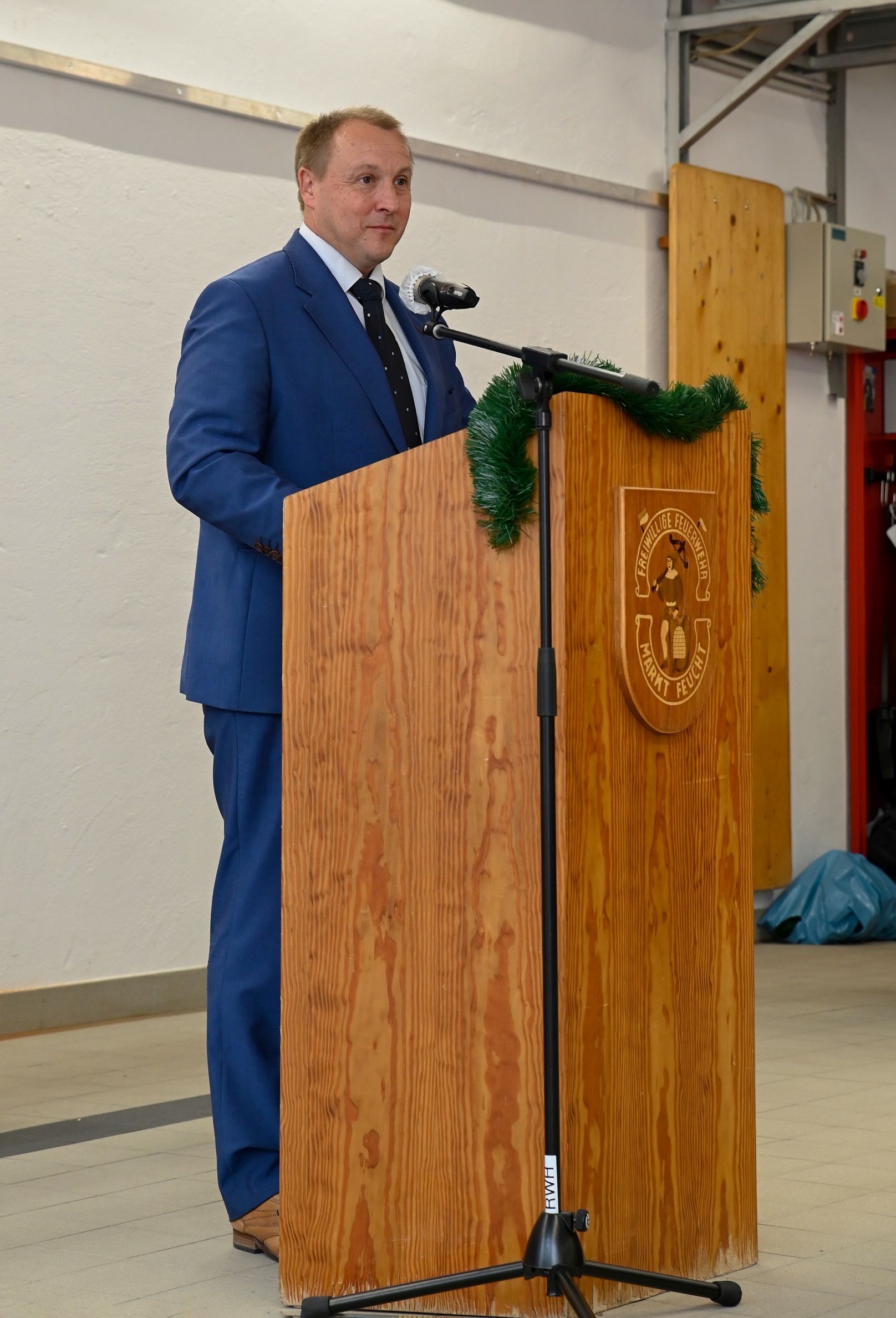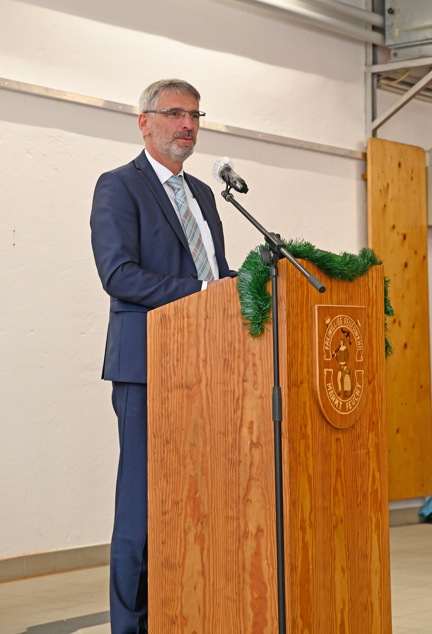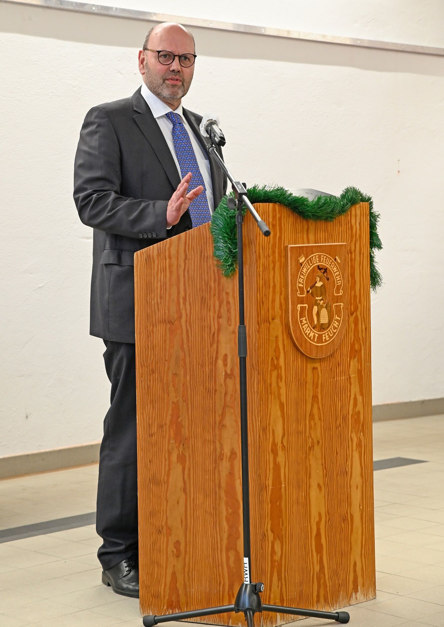 Stellvertretender Landrat Helmut Brückner bezeichnete die Ortsfeuerwehren als eine der wichtigsten Organisationen der Landkreiskommunen und die Aktiven als unverzichtbare Ehrenämtler. „Ich wünsche euch die gebotene Wertschätzung durch die Gesellschaft und dass ihr immer gesund und unfallfrei vom Einsatz zurückkommt.“ Kreisbrandrat Holger Herrmann zählte die Feuchter Wehr zu den „Big Five“ des Landkreises und hob die vielen Einsätze insbesondere auf der Autobahn hervor. „Ihr seid eine Super-Wehr und habt eine tolle Mannschaft – und Eure Jugendgruppe ist das Fundament für die Zukunft.“