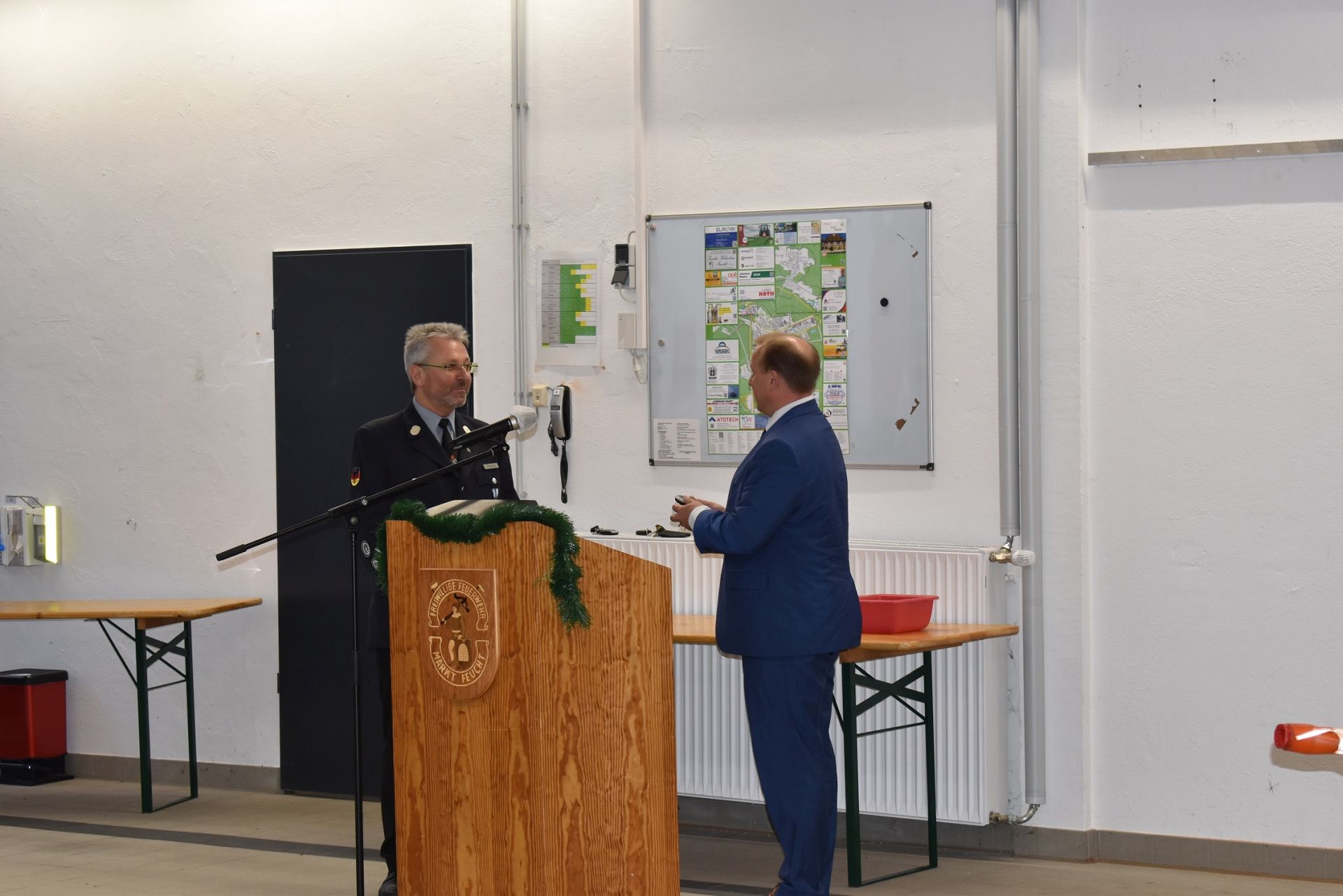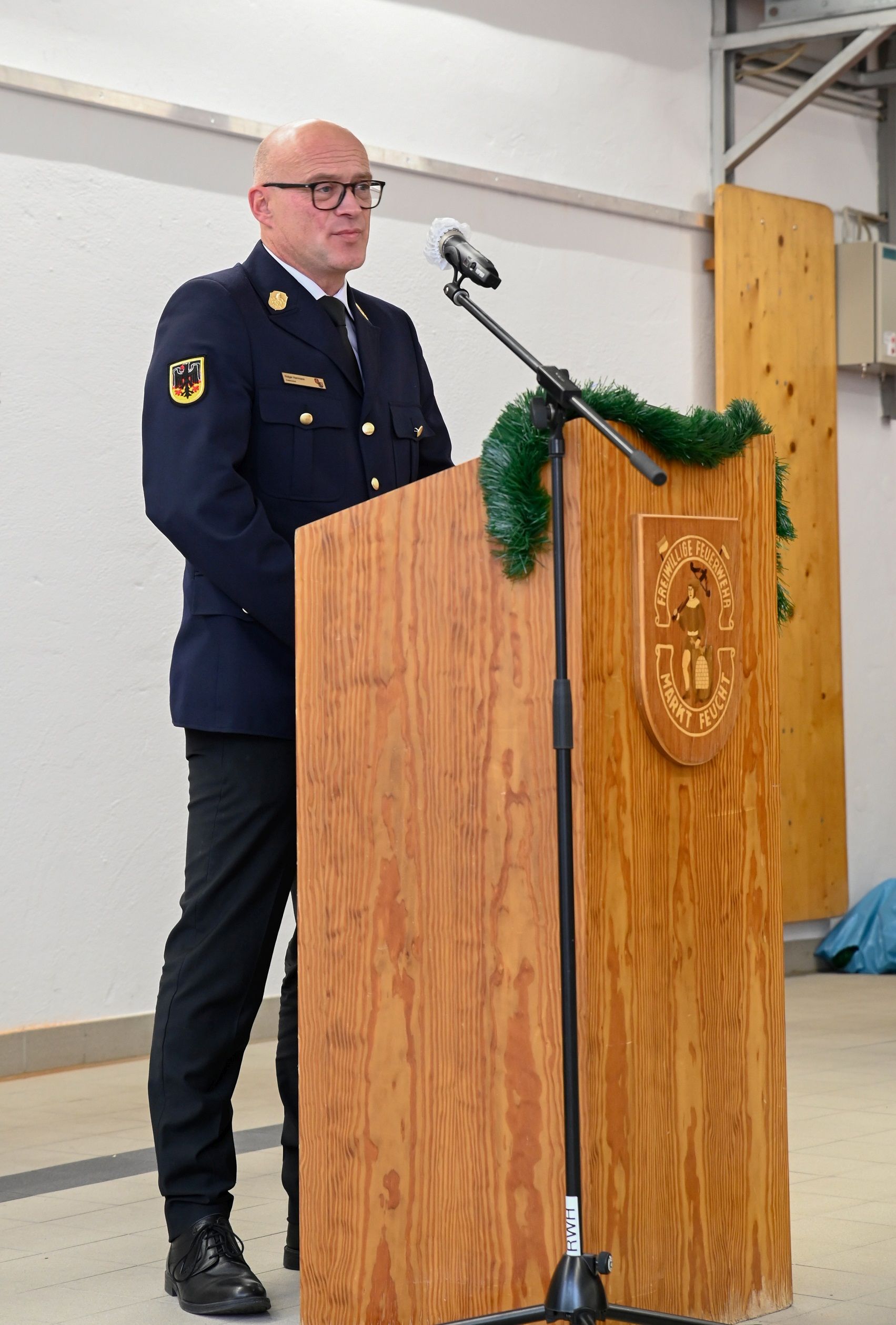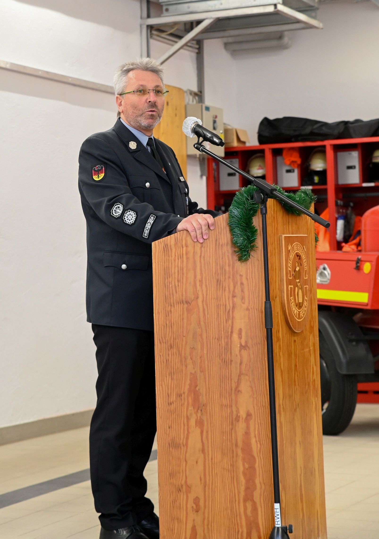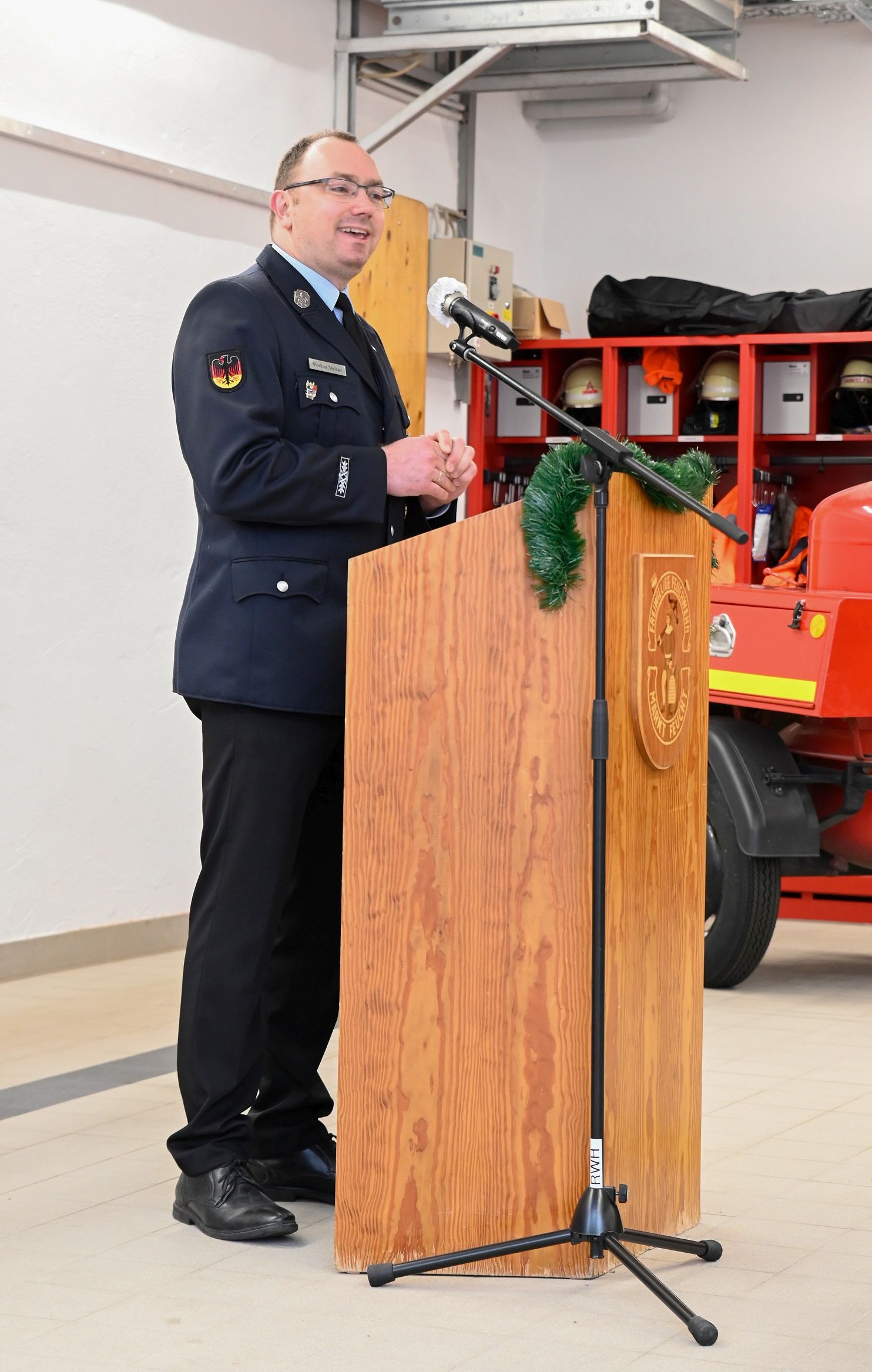 Kommandant Armin Zwilling bedankte sich ebenfalls bei den Geehrten für ihren Einsatz in der Feuerwehr, bei der Gemeinde für das neue Fahrzeug und bei seiner Mannschaft für ihr Engagement.