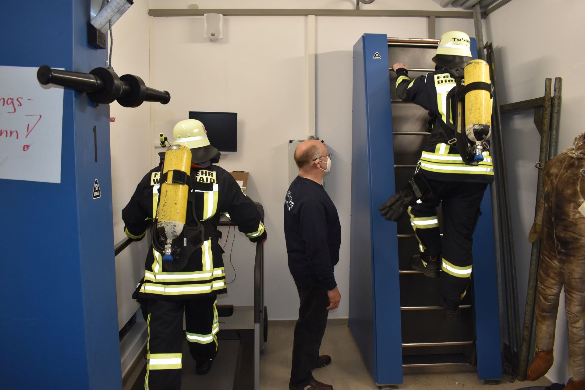 Dass die Tätigkeit als Atemschutzträger auch körperlich anspruchsvoll ist, erfuhren die Teilnehmer im Rahmen eines Belastungstests, der aber von allen problemlos absolviert wurde.