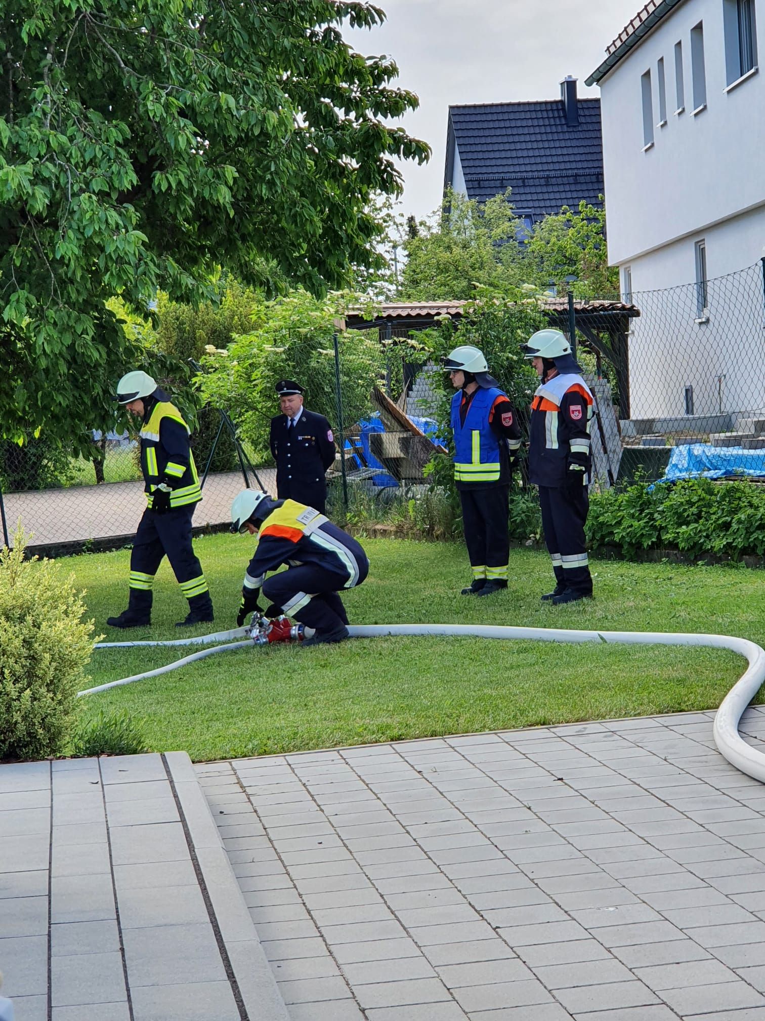 Da nach der langen Zwangspause endlich wieder eine Leistungsprüfung stattfand, kamen neben den ausführenden Schiedsrichtern, Andreas Partsch, Leonhard Müller und Norbert Bundil, auch noch Kreisbrandinspektor Thorsten Brunner und Kreisbrandmeister Roland Gensch zur Prüfung. Die Gruppe der Feuerwehr Großviehberg führte die Leistungsprüfung zunächst in Stufe 1 mit Neu-Mitglied Markus Schienhammer erfolgreich aus. Die restlichen Posten wurden durch Auffüllende besetzt. Anschließend wurden die Posten für einen weiteren Durchgang verlost und der simulierte Einsatz „Brand eines Nebengebäudes“ erfolgreich durchgeführt. Hierbei erhielt Tobias Loos das Abzeichen der Stufe 4 und Martin Lämmermann Stufe 5. Im Anschluss wurden die Einsatzsimulationen kurz besprochen und ein besonderer Dank an diejenigen ausgesprochen, die bereits die höchste Stufe erreicht und bei den beiden Gruppen aufgefüllt hatten. Die Kammeradinnen und Kammeraden saßen danach noch mit den Schiedsrichtern zu Weißwürsten und Wienern vor dem Feuerwehrhaus und genossen die Zusammenkunft nach so langer pandemiebedingter Pause.