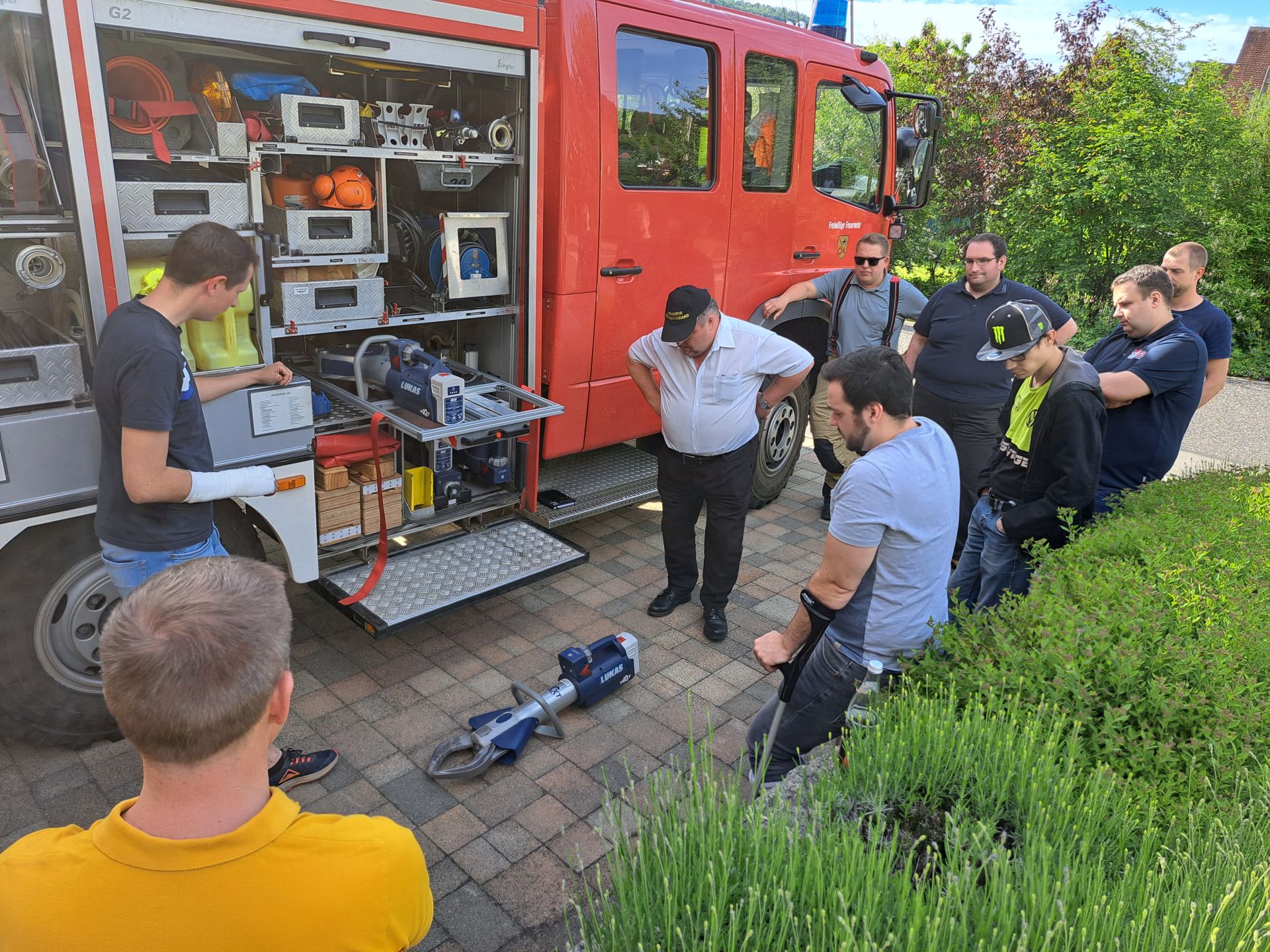 Am 02.Juni konnten sich dann die THL-Multiplikatoren erstmals wieder bei einer Präsenzveranstaltung im Feuerwehrhaus in Kainsbach treffen. Wie gewohnt wurde zuerst das Fahrzeug und die Ausrüstung der ausrichtenden Wehr besichtigt. Die Mitglieder der Feuerwehr Happurg zeigten Ihren neuen Akku-Rettungssatz von Lukas und den notwendig gewordenen Umbau im Fahrzeug. Hier zeigte sich die Freude aller Beteiligten, wieder mit den Kameraden ins Gespräch zu kommen. Anschließend begrüßte der neue Fachbereichsleiter Stefan Ringer im Aufenthaltsraum die Anwesenden und Übergab das Wort an die Kreisbrandinspektion. KBI Brunner, KBI Wolshöfer und KBM Loos stellten die Neuerungen und das zukünftige gemeinschaftliche Vorgehen im Landkreis vor. Im Anschluss konnten die Multiplikatoren Ihre Wünsche und Anregungen für die Zukunft vorbringen.