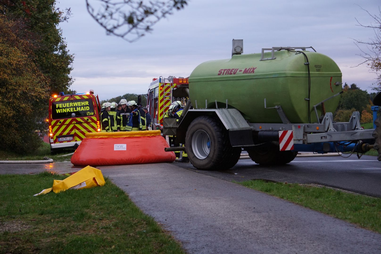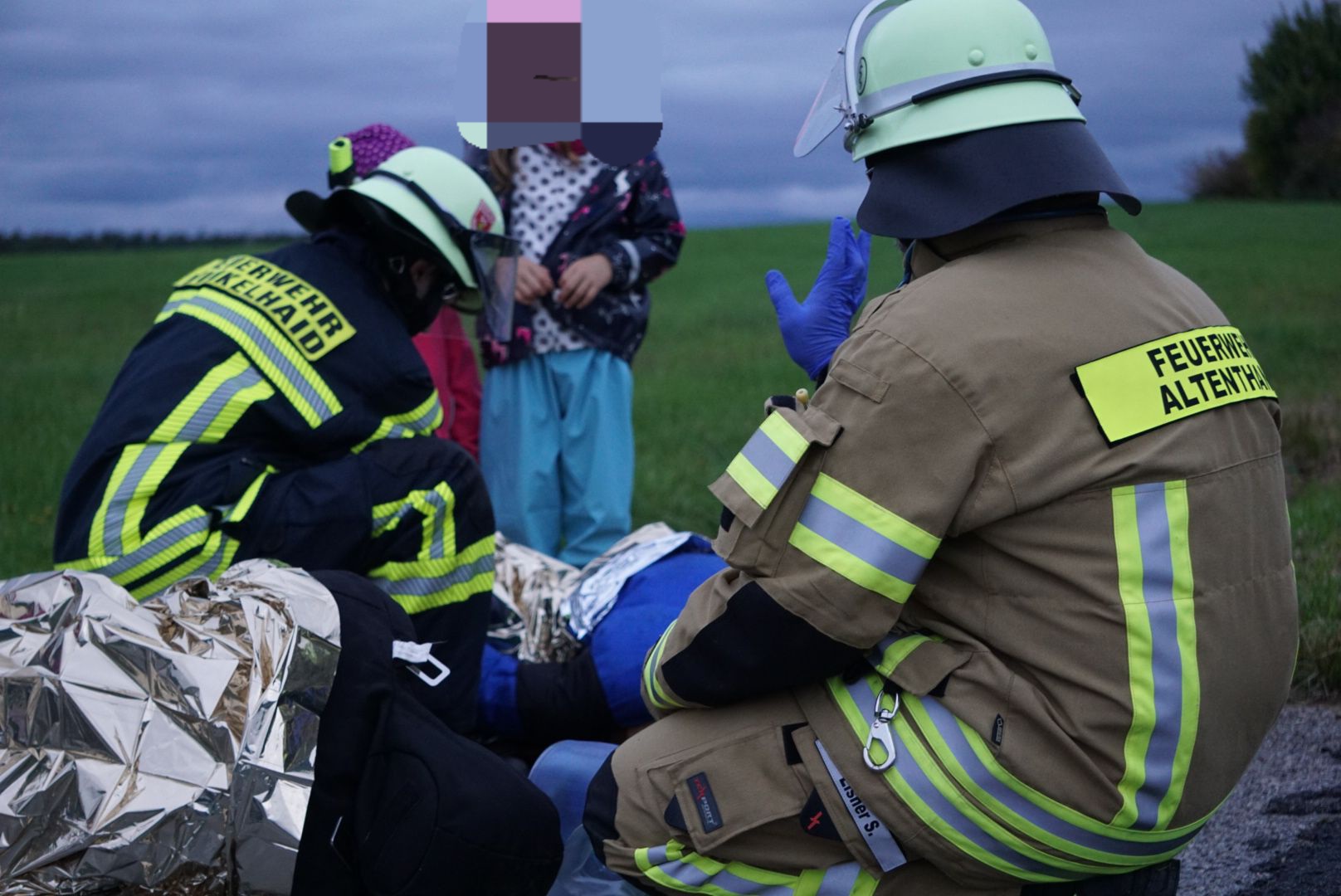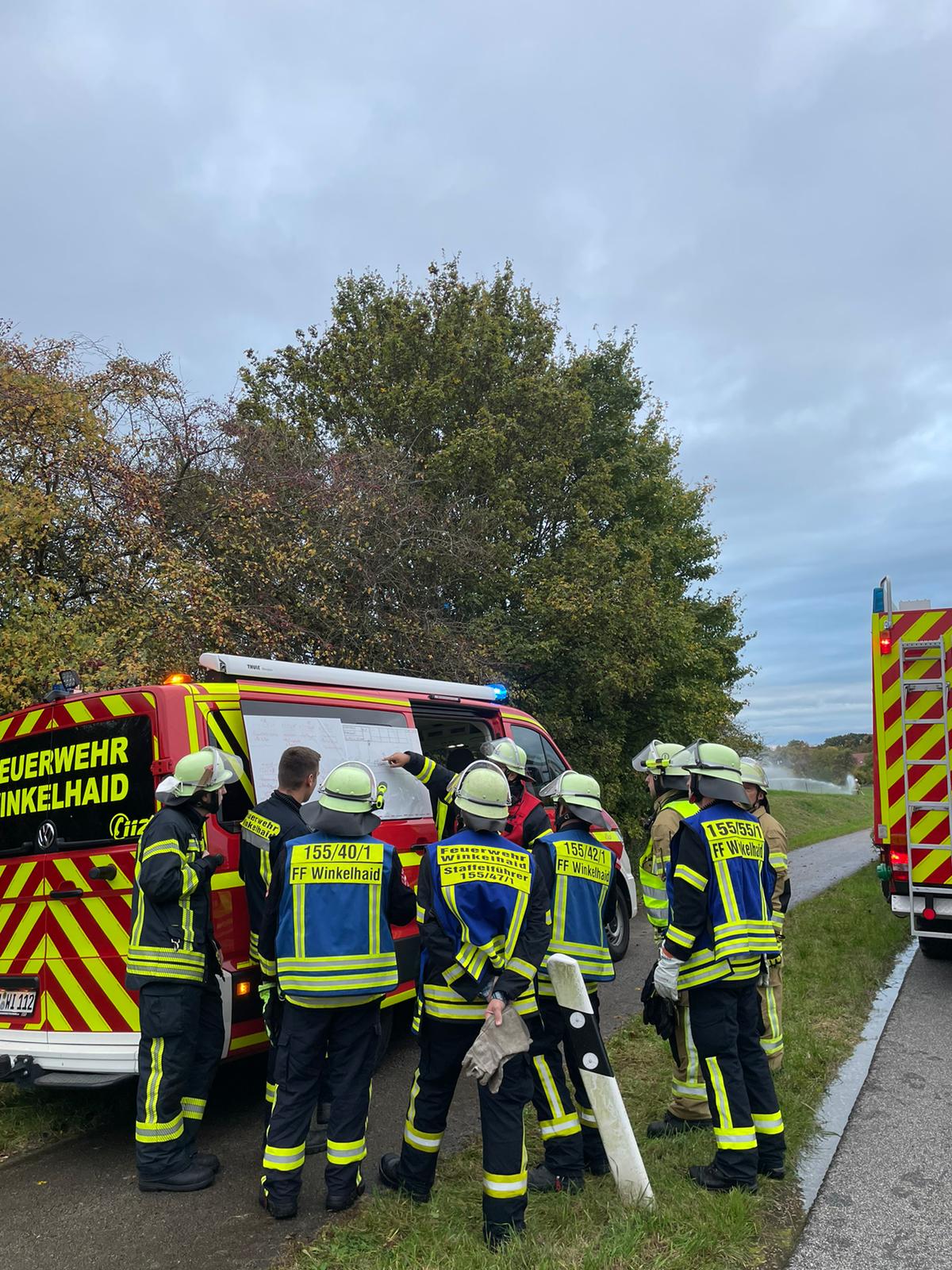 Winkelhaid (DB 3) - Am Samstagabend den 15.10.2022 wurden die Feuerwehren Altenthann und Winkelhaid, durch die ILS Nürnberg zu einer Übung auf die Verbindungstraße zwischen Altenthann und Winkelhaid alarmiert. Angenommen wurde ein Brand eines Traktors, der sich bereits auf die umliegende Vegetation ausgebreitet hat.