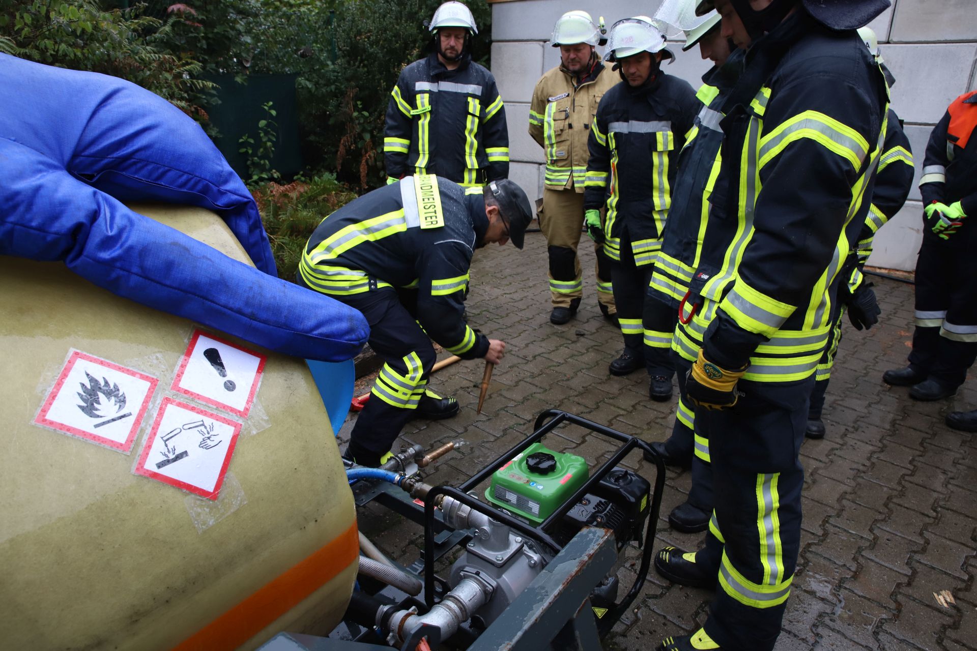 Abschließend befasste sich Station 6 dann mit den Erstmaßnahmen im Gefahrguteinsatz. Hier ging es vor allem um die richtige Erkundung, Absperrbereiche, die korrekte Fahrzeugaufstellung, erste Maßnahmen zum Abdichten und Auffangen sowie die Einsatzgrundsätze im ABC-Einsatz.