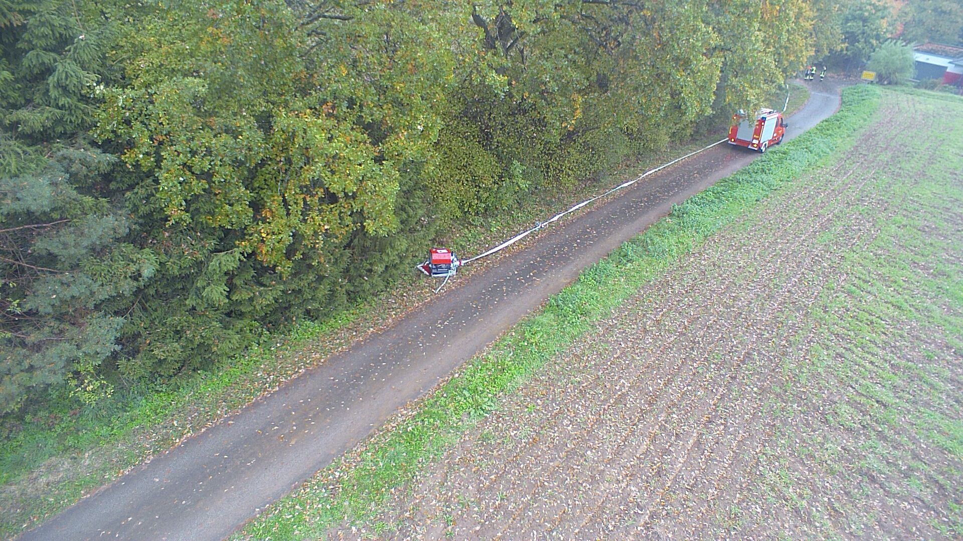Das erlernte Wissen wurde dann im weiteren Verlauf des Lehrgangs in praktischen Übungen vertieft, damit es bei zukünftigen Übungen und Einsätzen stehts zuverlässig angewandt werden kann. Abgeschlossen wurde der Lehrgang dann mit einer theoretischen und einer praktischen Prüfung. Bei der praktischen Prüfung, bei der auch die Kreisbrandinspektoren Thorsten Brunner und Philipp Wolshöfer sowie Kreisbrandmeister Thomas Loos anwesend waren, mussten die Teilnehmer eine lange Schlauchstrecke in Betrieb nehmen. Hier galt es, neben dem vorher nicht bekannten Höhenunterschied der Wasserförderung auch einen „Übungs-Schlauchplatzer“ zu bewältigen. Dies wurde von allen Teilnehmern souverän absolviert und man ließ den Lehrgang anschließend, bei gemeinsamer Brotzeit, noch einmal Revue passieren.