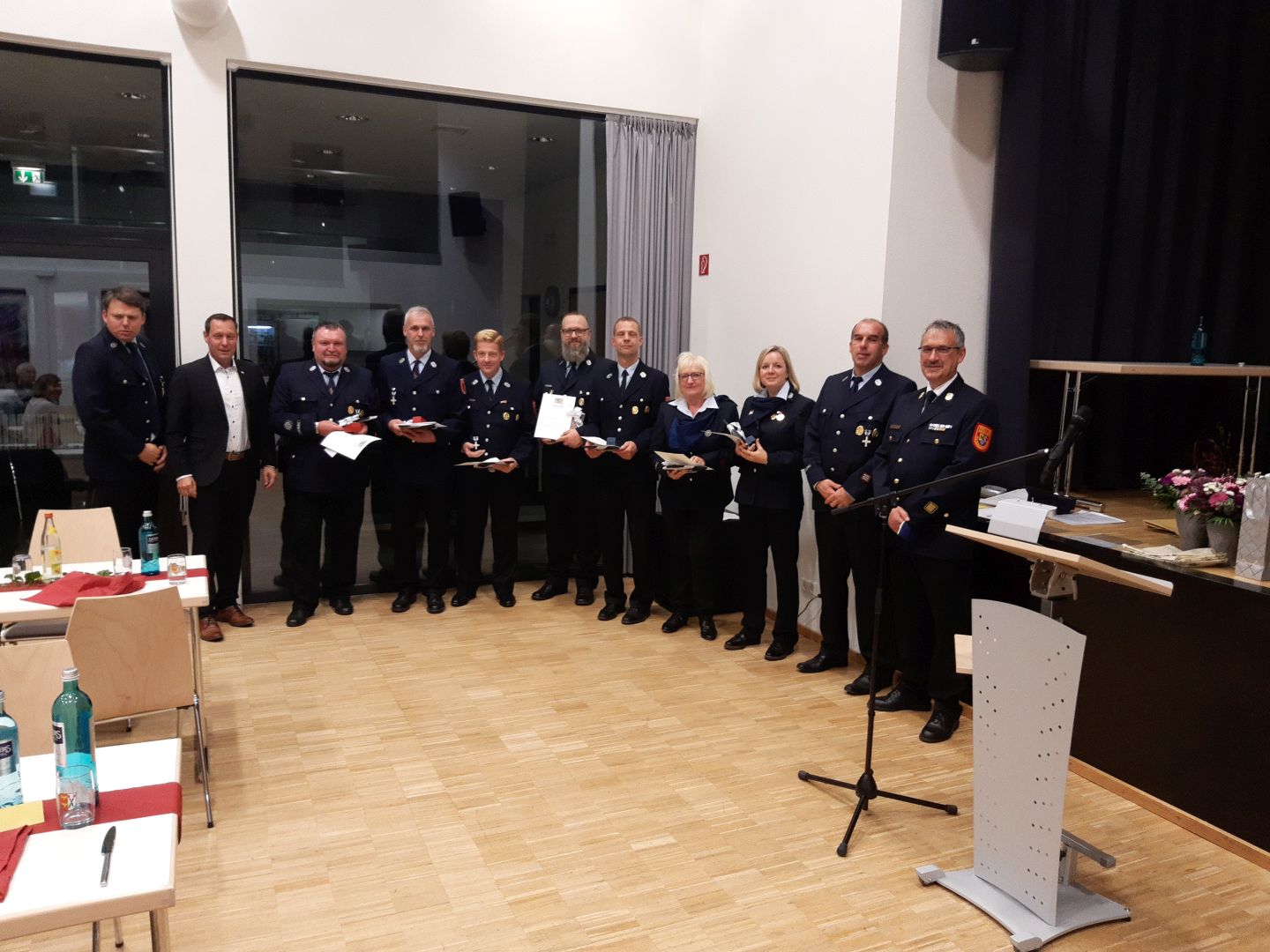 Mit dem staatlichen Feuerwehr-Ehrenzeichen wurden Klaus Nowak und Peter Schuster für 40 Jahre, Simone Beckenbauer, Petra Schuster, Klaus Sailer, Michael Kormann und Thorsten Schlütter für 25 Jahre aktiven Feuerwehrdienst geehrt.