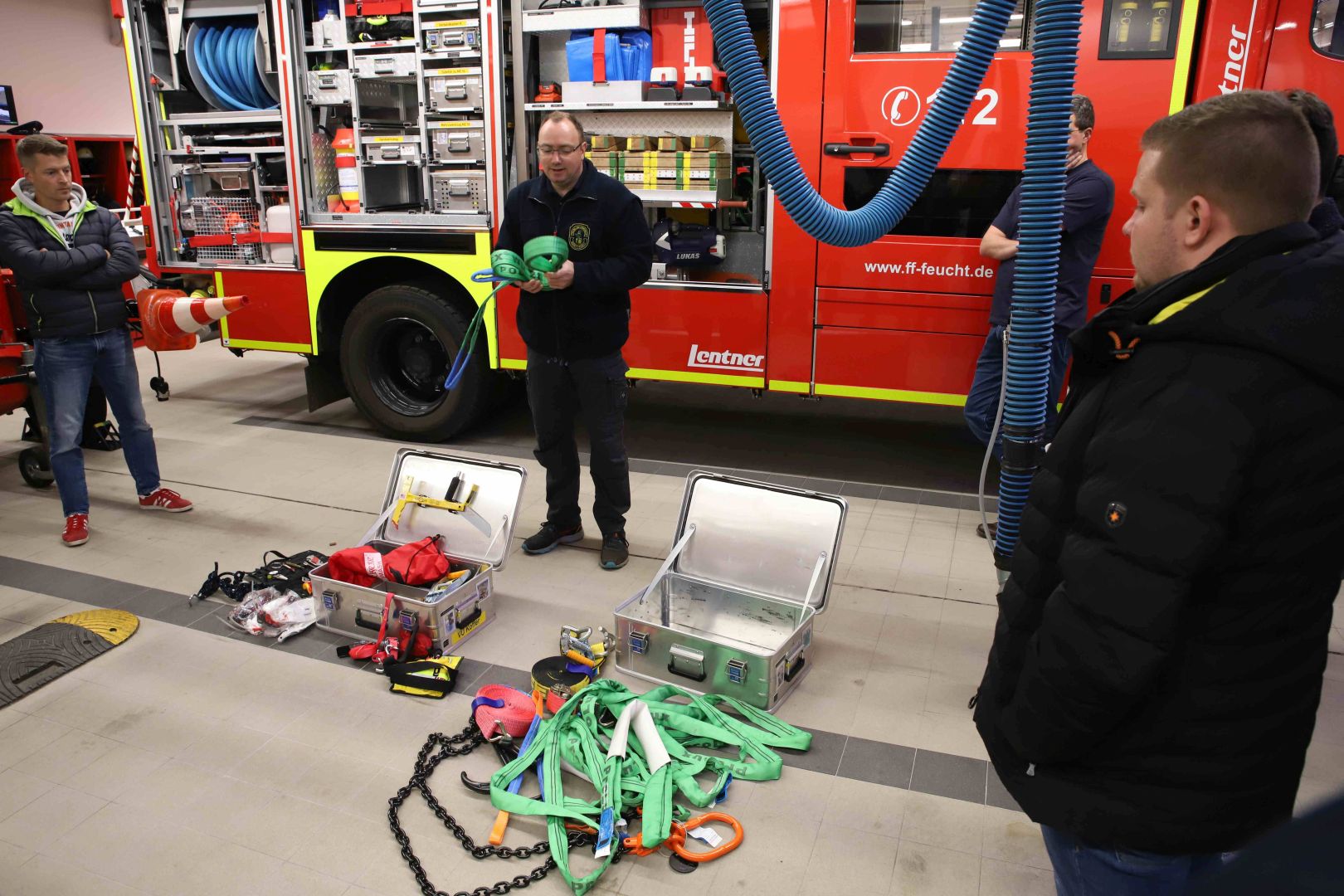 Im Anschluss folgte eine kurze standortspezifische Ausbildungseinheit, in der das erst in diesem Jahr in Dienst gestellte HLF 20 der Feuchter Wehr vorgestellt und die Gedanken, die man sich bei der Fahrzeugplanung und -beschaffung gemacht hat, besprochen wurden.