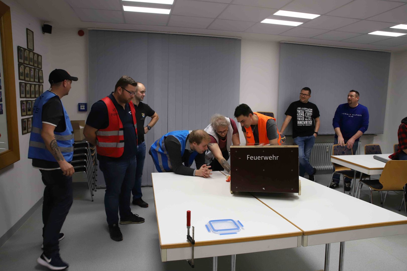 Nach einem intensiven Austausch hierzu stellte Kreisbrandinspektor Philipp Wolshöfer noch die landkreiseigene Planübungsbox „THL“ vor, mit der Einsatzszenarien der Technischen Hilfeleistung in einer Art Planspiel dargestellt und absolviert werden können. Hierfür wurde aus den Teilnehmern eine Löschgruppe gebildet und der Einsatz Schritt für Schritt geplant und durchgeführt. Die Planübungsbox kann von den Wehren zur Ausbildung am eigenen Standort über KBI Philipp Wolshöfer für die Ausbildung in den Dienstbezirken ausgeliehen und für eine Unterstützung der Ausbildung herangezogen werden. Gerne unterstützt der Fachbereich Ausbildung auch dabei die Feuerwehren.