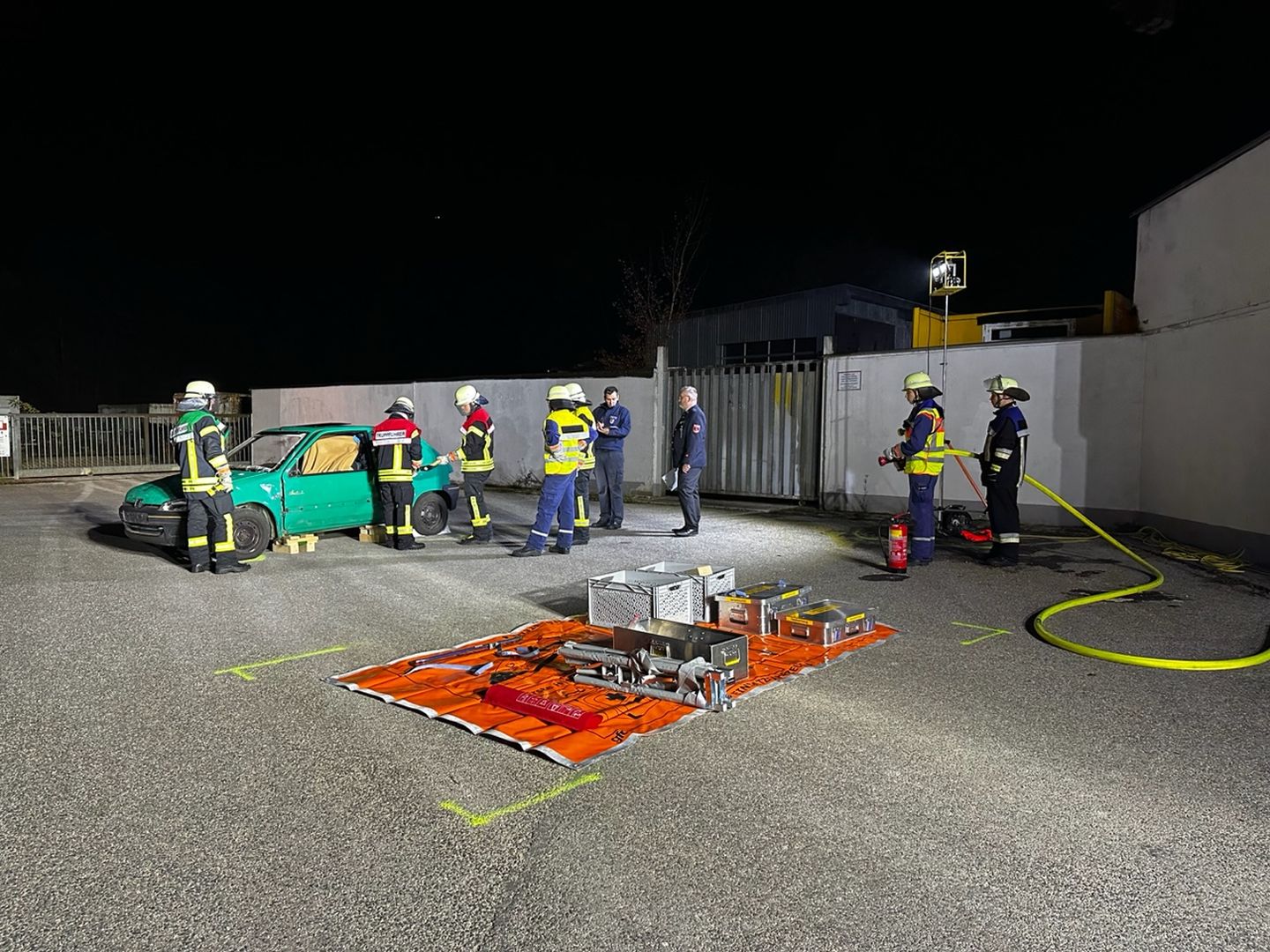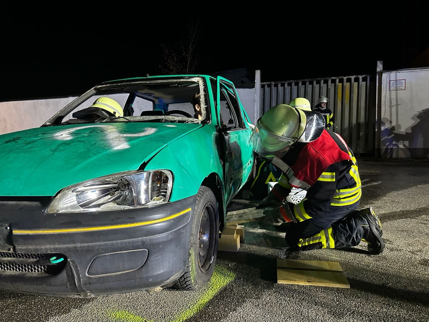 Am Prüfungstag selbst war Teamwork gefragt. Im praktischen Prüfungsteil wurde ein Verkehrsunfall mit eingeklemmter Person bei Nacht simuliert. In der Gruppe mussten die Erst- und Sicherungsmaßnahmen bis zur Befreiung der Person durchgeführt werden. Die Prüfung fand unter der Aufsicht des Ausbildungsleiters DB2 KBM Frank Schmidt statt. Unterstützt wurde er durch die Speikerner Ausbilder.